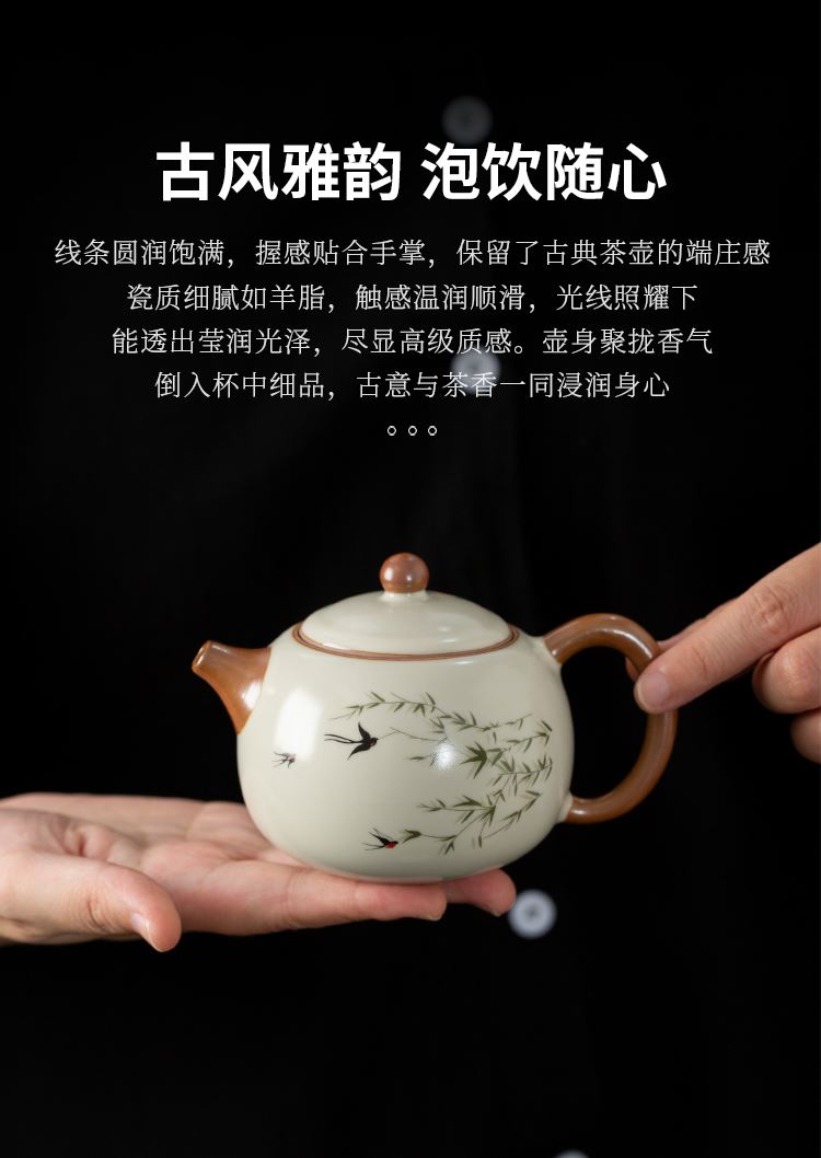云博陶瓷汝窑燕衍春户外旅行茶具皮盒装一壶四杯配茶叶罐中国风