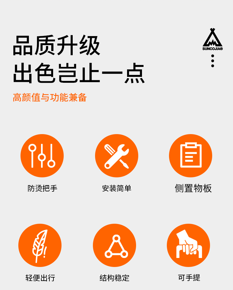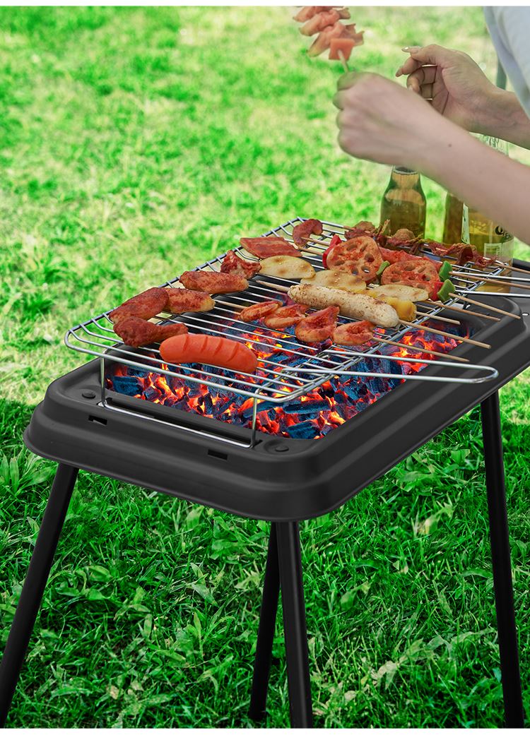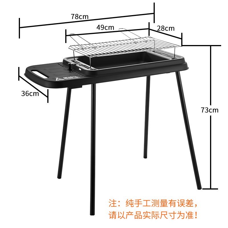 炉体:冷轧铁 烤网:不锈钢 彩盒包装 符合人体工学设计,烧烤更便利