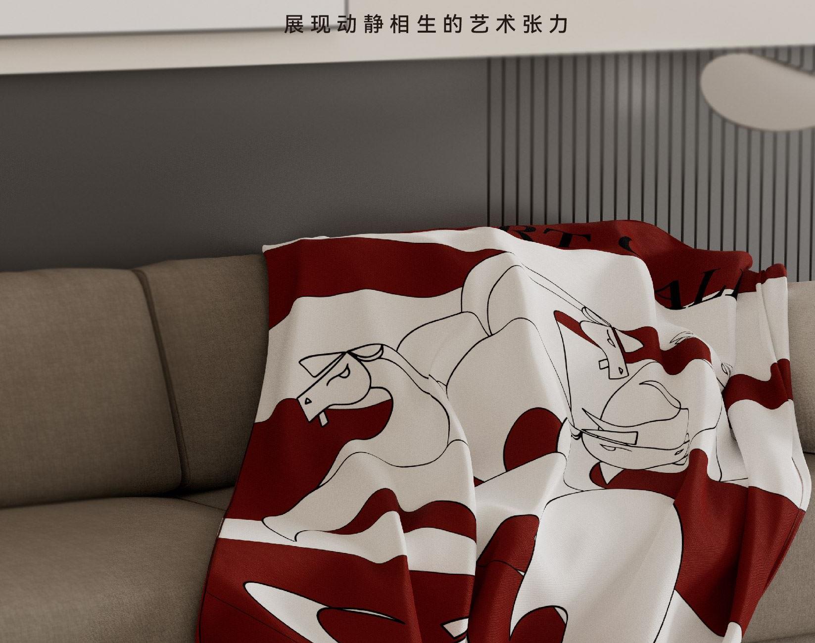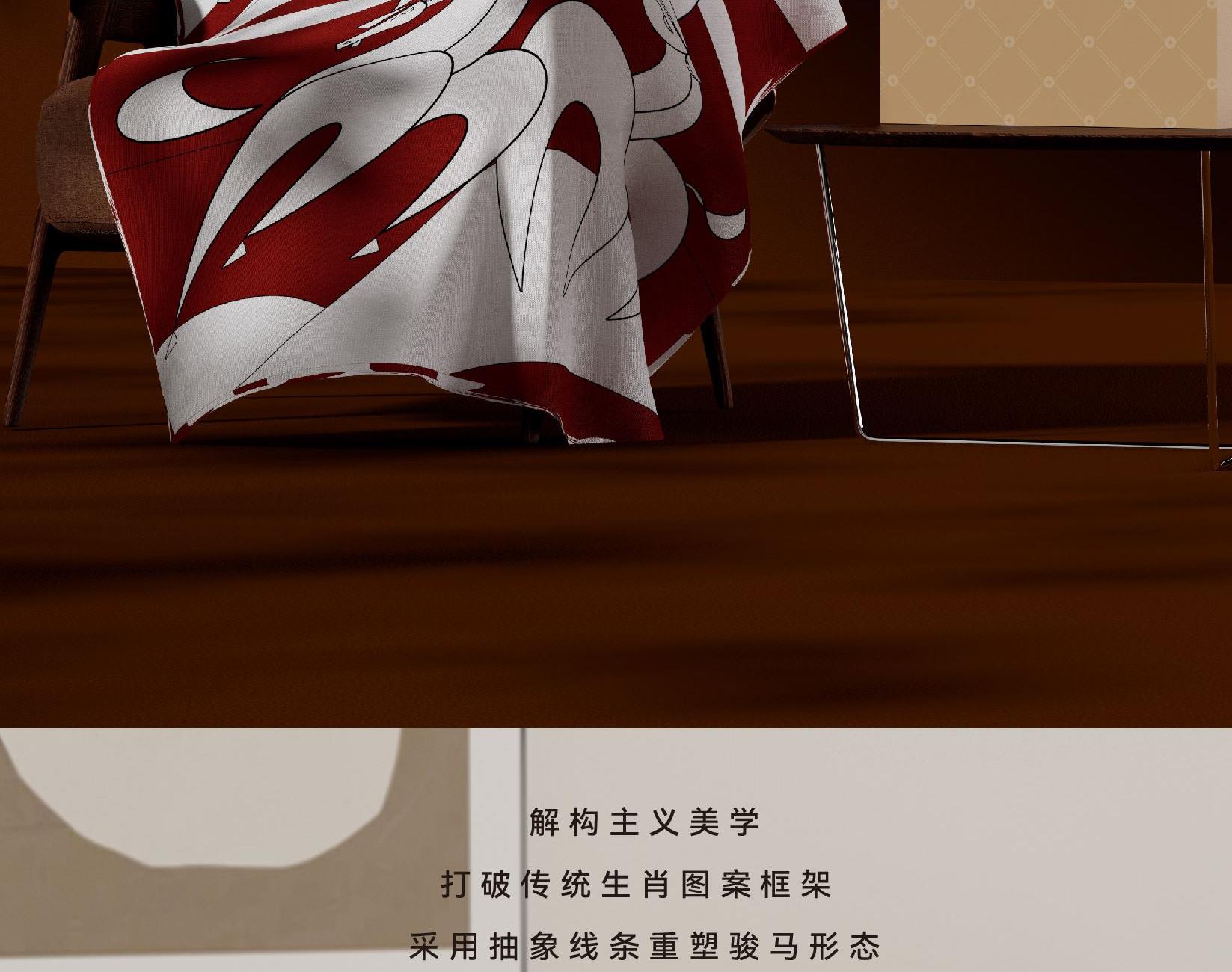 以抽象的线条与块面,勾勒马匹驰骋时的动态瞬间。“艺境驰骋”不止于马的意象,更寓意新年的奔赴与自由。几何化的结构语言,赋予传统生肖当代的艺术表达。 马踏流光,不扰尘寰,乘风而行,心向无际,愿新岁,步履从容如诗 规格: 80x130cm 材质:腈纶 包装尺寸:380*290*90mm