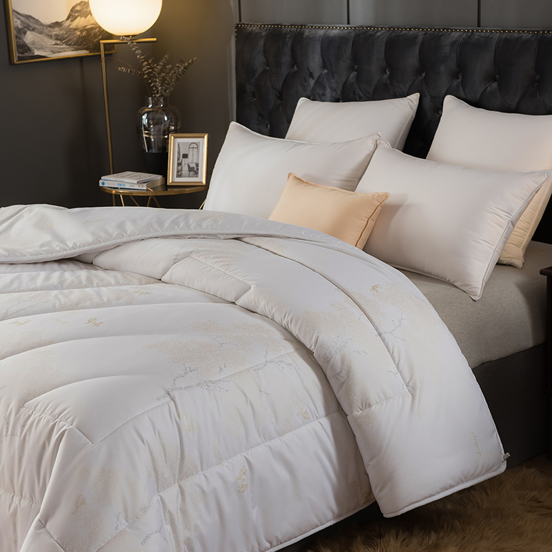 面料:高密防羽布 填充:羊毛 规格:200cm*230cm 填充克重:2000g 总重量:3000g 包装:精美软包 羊毛被优选品质均匀,柔软性佳,有弹性强度高的羊毛材料,而且有很好的可弹性。羊毛自身的卷曲性使被子蓬松透气同时能够很好的锁住温度,使热量均衡不流失,保持温暖,整晚舒适。