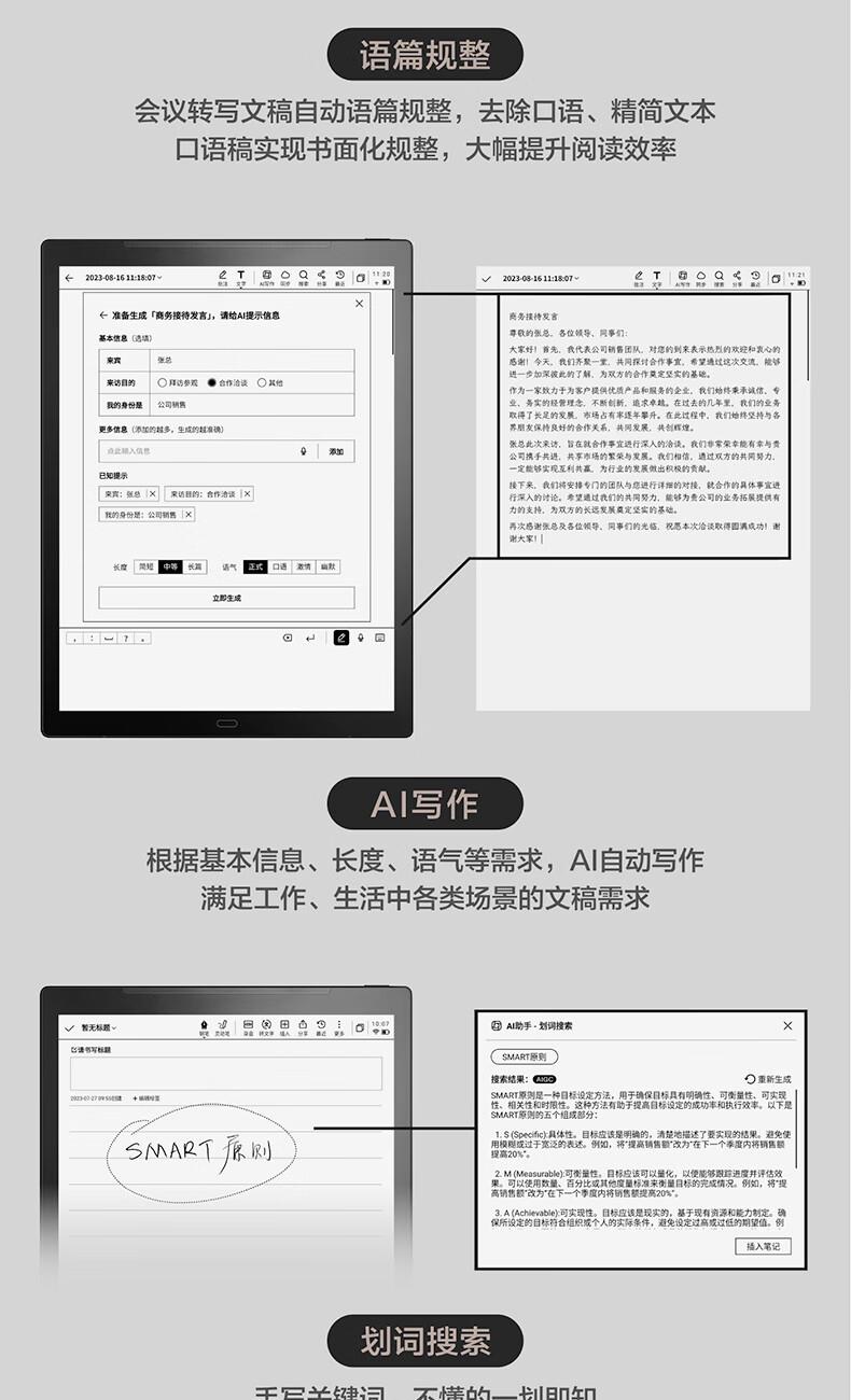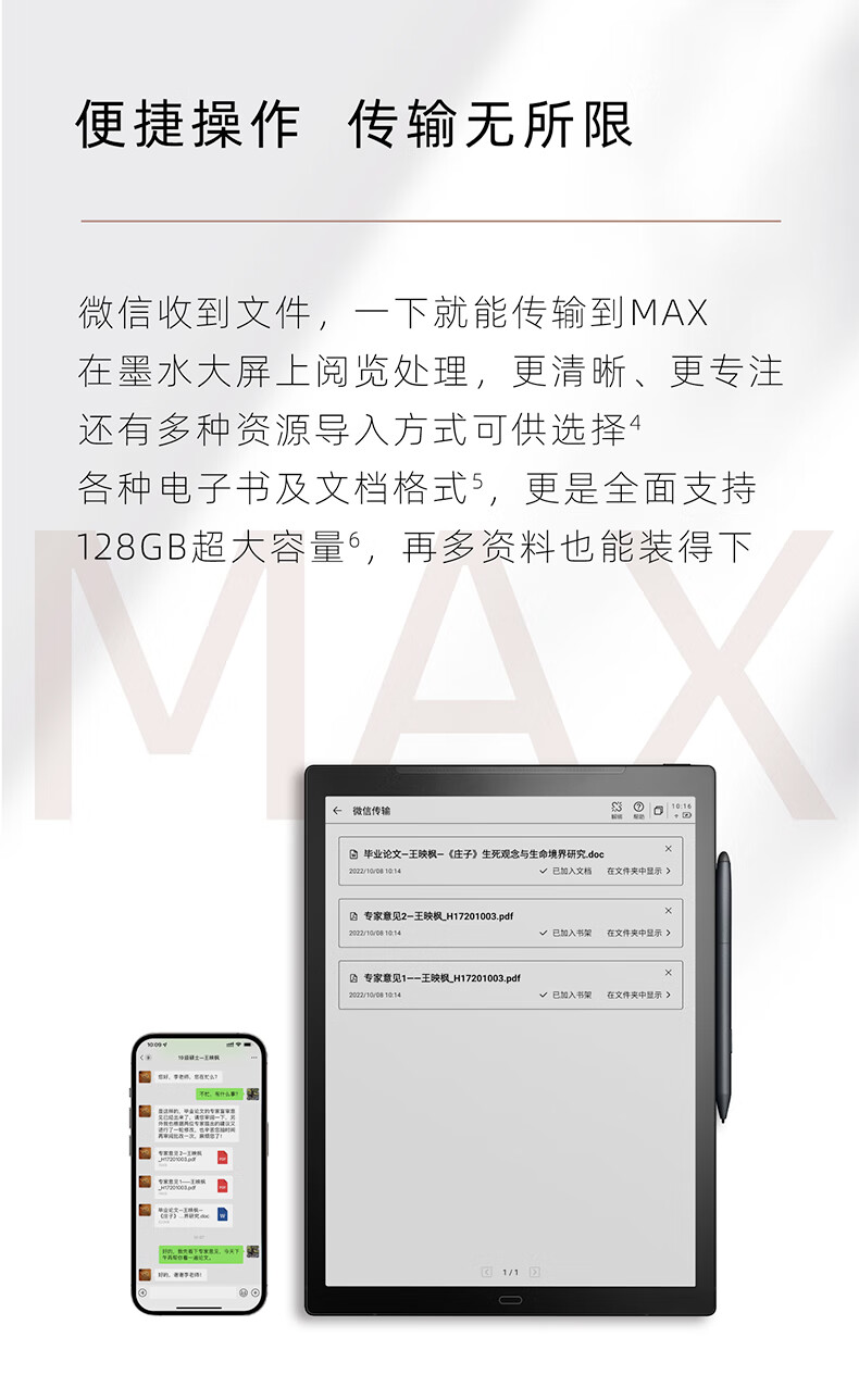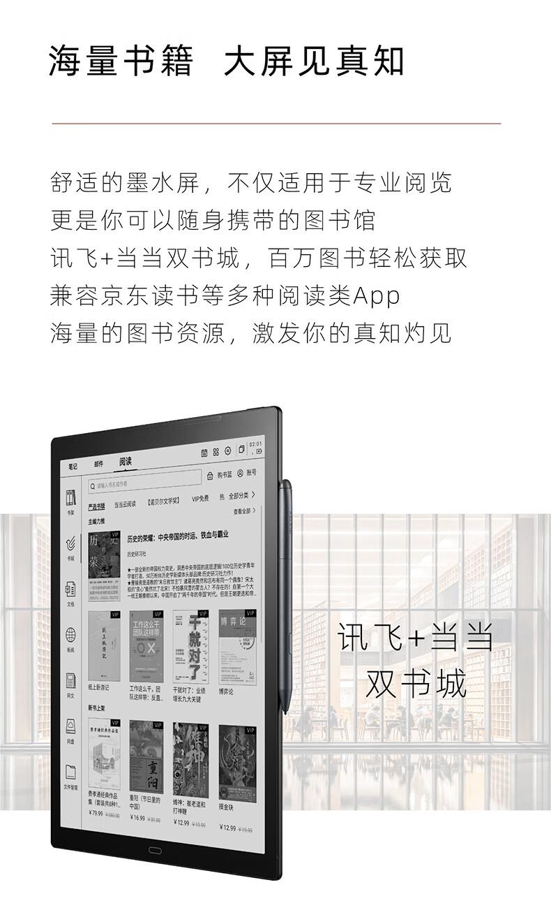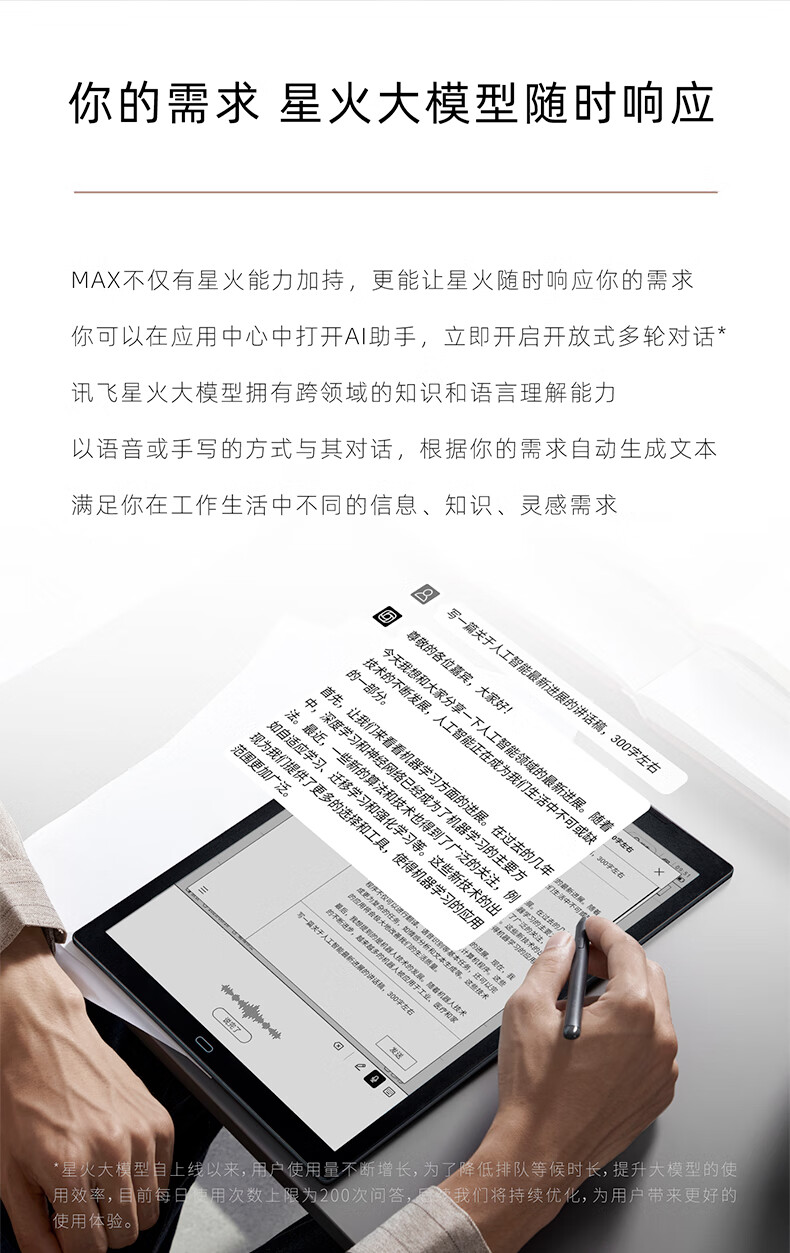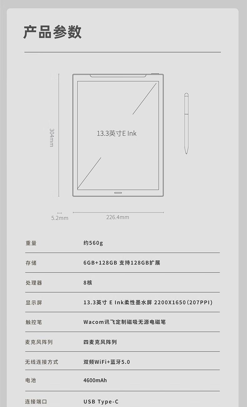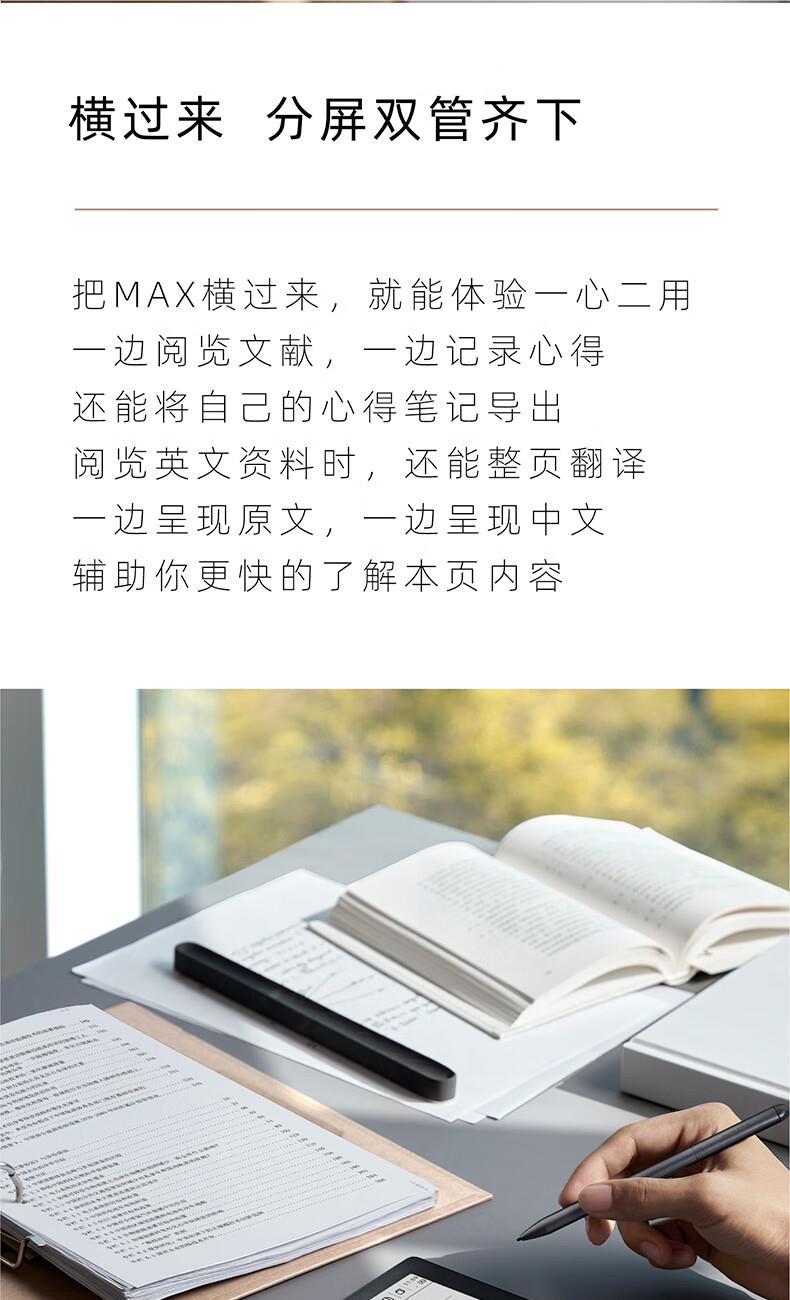 科大讯飞(iFLYTEK) 商品编号:10063391661069 内存容量:128GB 类别:阅读器套装 分辨率:207ppi 机身色系:黑色系 屏幕尺寸:13.3英寸 手写功能:电磁 功能:语音转文字 CCC强制性认证:是 型号:MAX 国补备案型号:XF-DX-T113E 认证型号:XF-DX-T113E