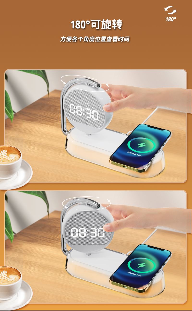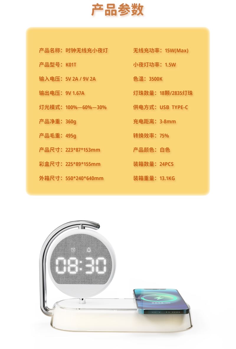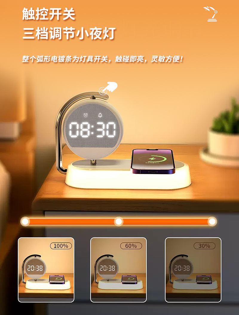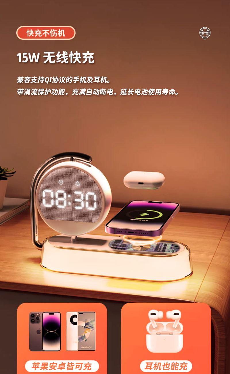 奥苏米小时光小夜灯闹钟无线充