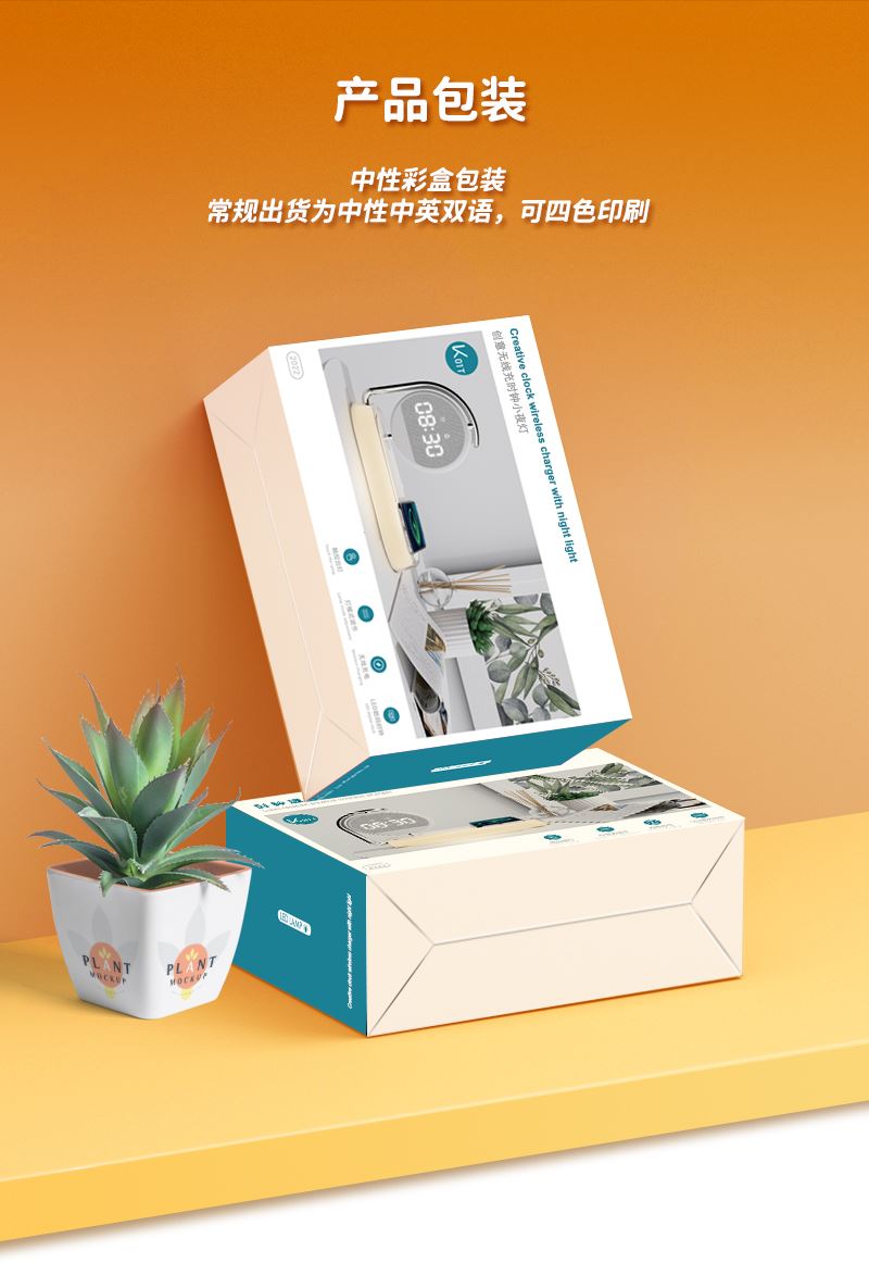 小时光 小夜灯闹钟无线充 颜色:白色 材质:ABS 尺寸:220*157*85mm 包装:彩盒包装 15W大功率无线快充 触摸感应柔和小夜灯 布艺柔光定时闹钟 三档色温亮度调节 智能识别芯片保护机芯 兼容苹果/华为/小米等多种机型
