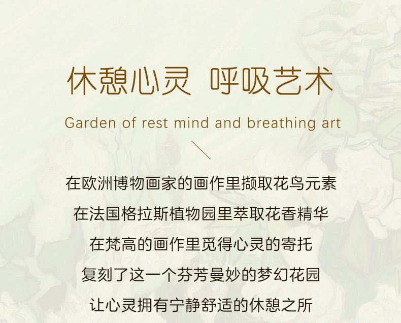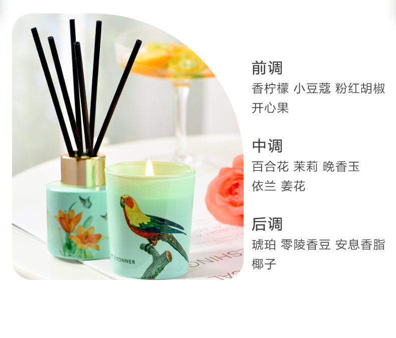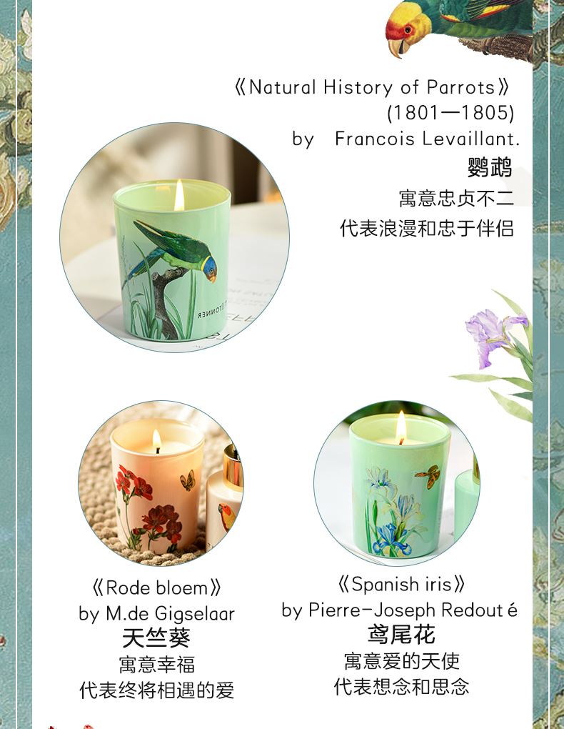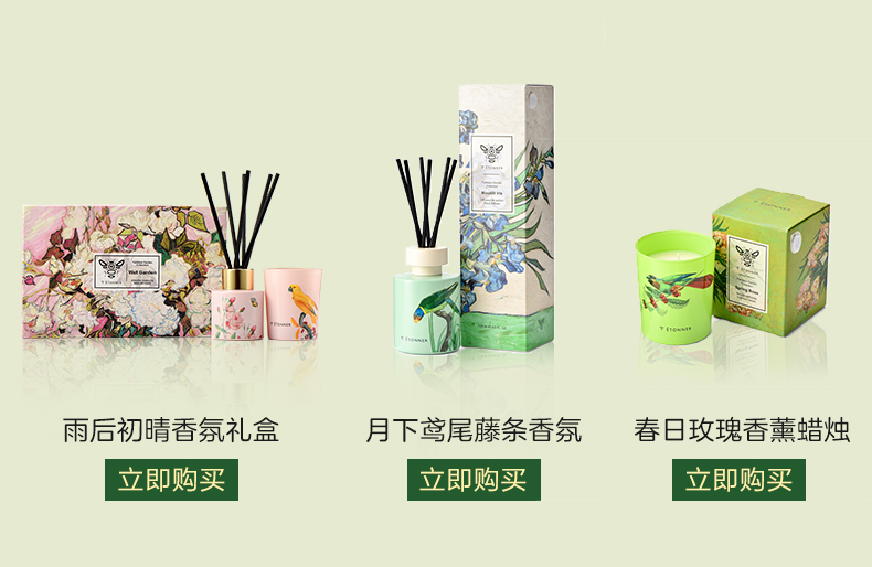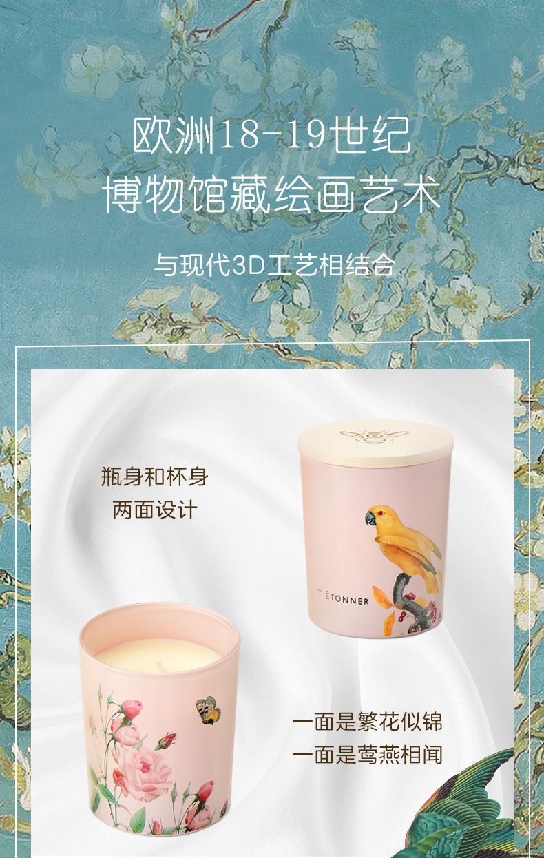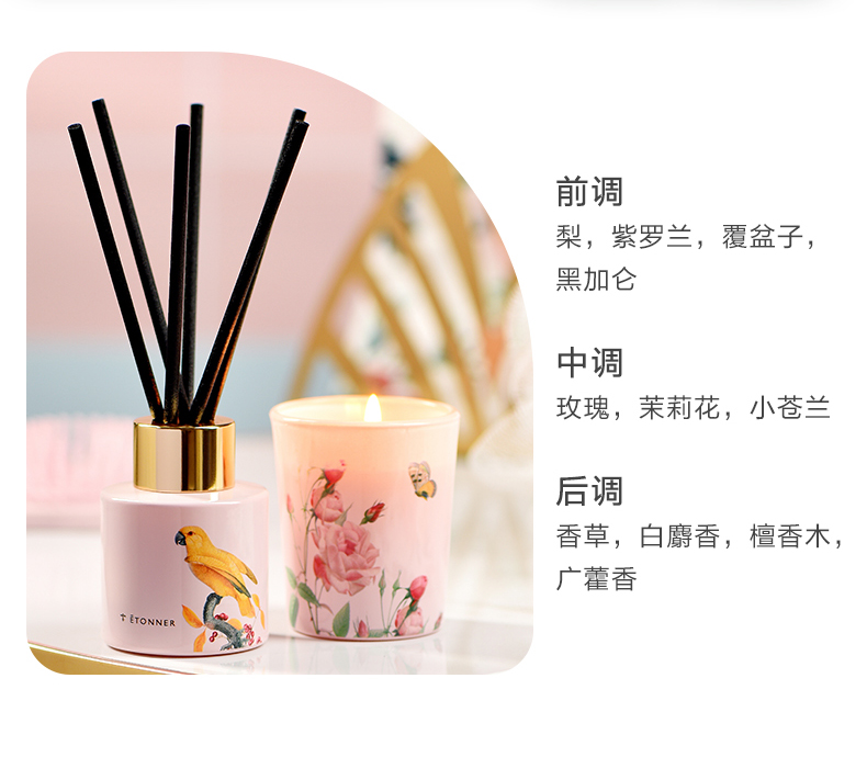 撷取欧洲博物画作的设计灵感, 精选法国格拉斯EP集团优质香精, ÉTONNER途雅全力打造了梦幻花园系列家居香氛。 欣赏博物花鸟图鉴艺术, 呼吸自然博物园的灵动香气, 让心灵拥有宁静舒适的休憩之所。 途雅每一款香氛都有其独特的香味灵魂, 由内而外散发着优雅的气质。 香薰:50ml,蜡烛70g,4*160mm藤条6根 香型: 雨后初晴 Wet Garden 日光百合 Sunny Lily 夏暮天竺葵 Summer Geranium 春日玫瑰 Spring Rose 月下鸢尾 Moonlit Iris 另外:途雅香薰蜡烛系列现货均采用法国进口香料,瓶身立体花纹制作,配精致礼盒礼袋包装,礼品档次不一样。 如需低价位产品,可洽根据具体要求定制。