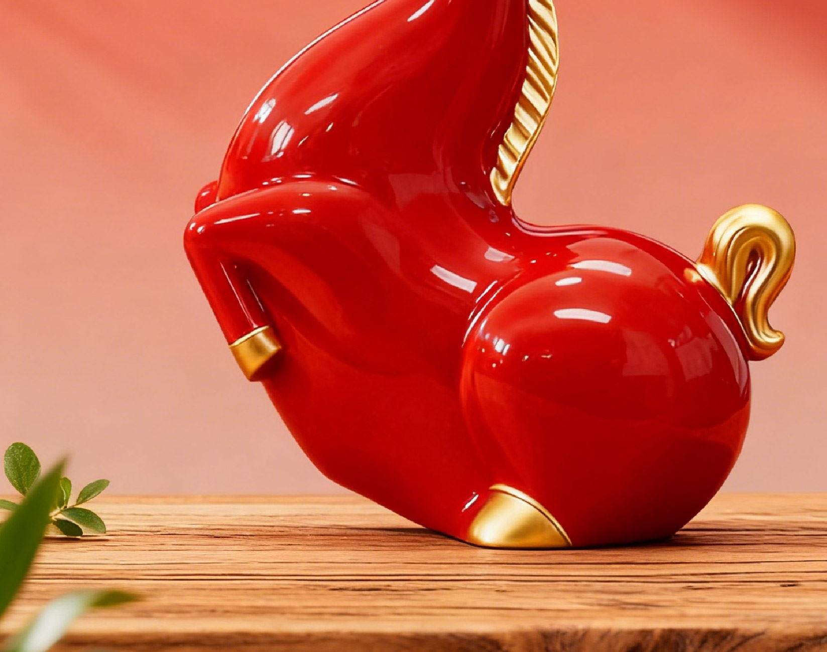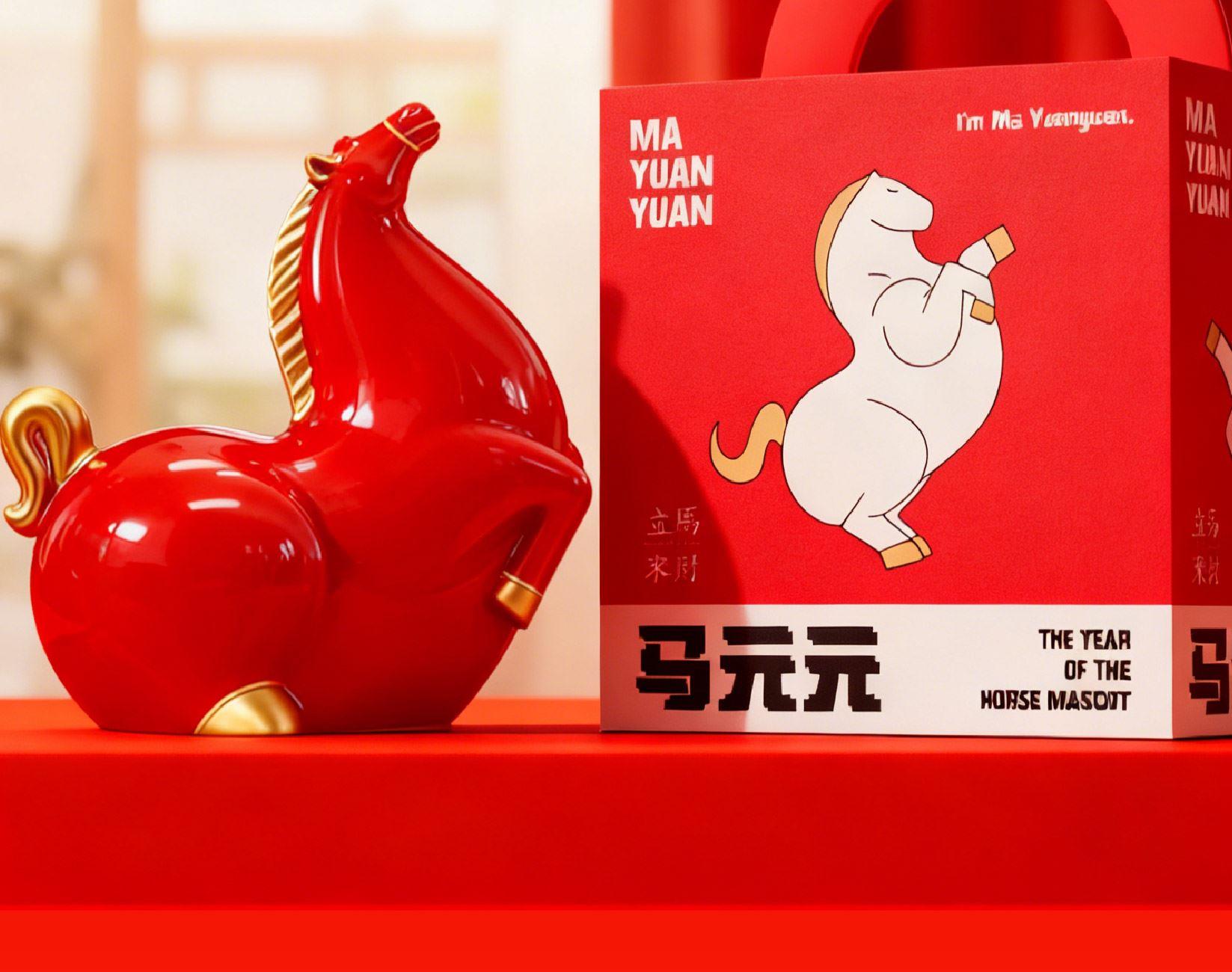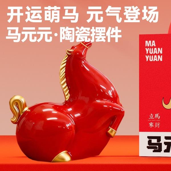 马身披覆中国红,彰显新年喜庆与热忱活力,局部点缀璀璨金,马蹄踏金,象征前程坚实;马尾熔金,寓意财富汇聚。 其名“马元元”,巧妙融合“元宝”的财运愿景与“元”字所代表的开端、本源与元气,寄愿新的一年:生活富足安康,事业一马平川,开启富足丰饶的新篇章。 规格: 高约12cm;宽约11cm 材质:陶瓷 包装尺寸:13.5✘13.5✘13.5cm
