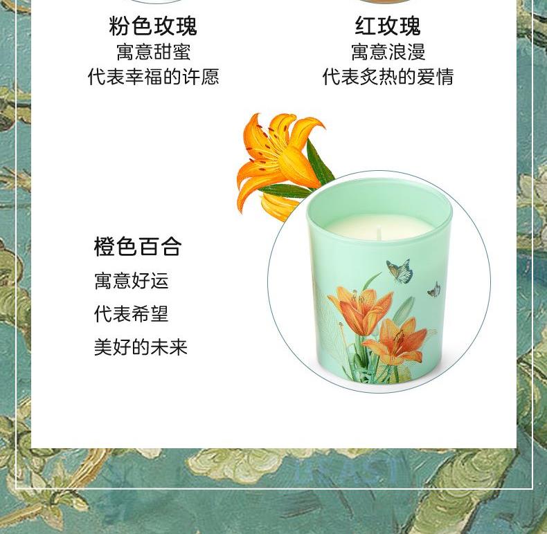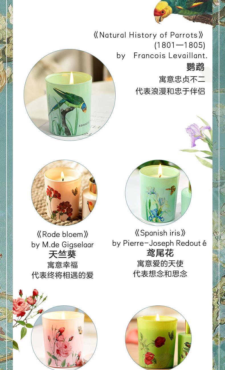 香薰蜡烛:130g 香型: 雨后初晴 Wet Garden 日光百合 Sunny Lily 夏暮天竺葵 Summer Geranium 春日玫瑰 Spring Rose 月下鸢尾 Moonlit Iris