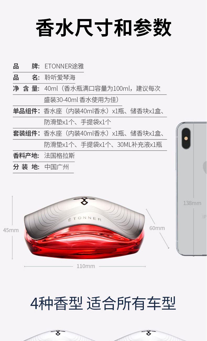 途雅车载香薰聆听爱琴海40ML香水+储香块12粒E2001