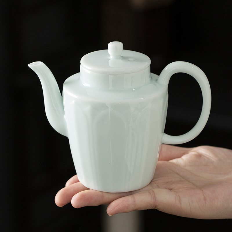 云博陶瓷影青莲花并蒂壶款皮盒旅行茶具套装青瓷中国风浮雕茶具