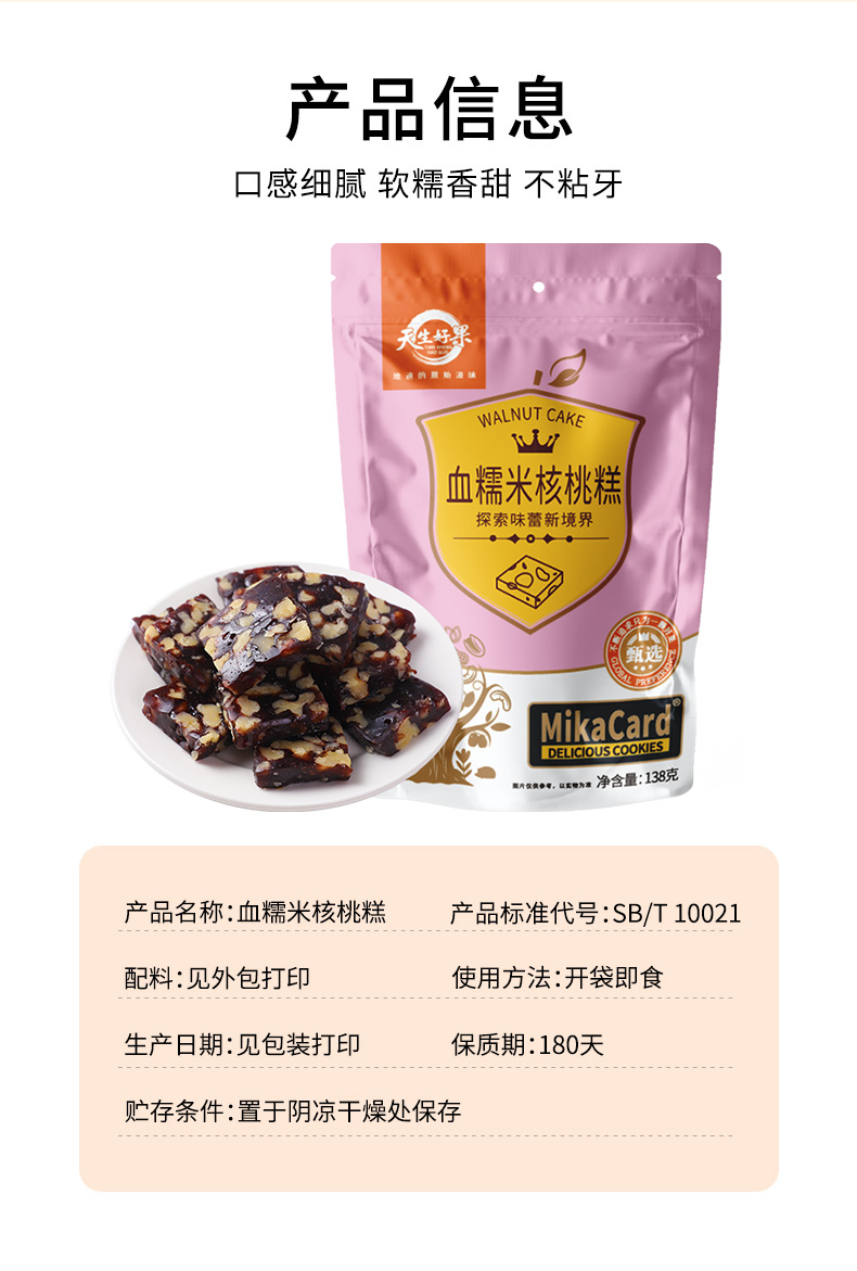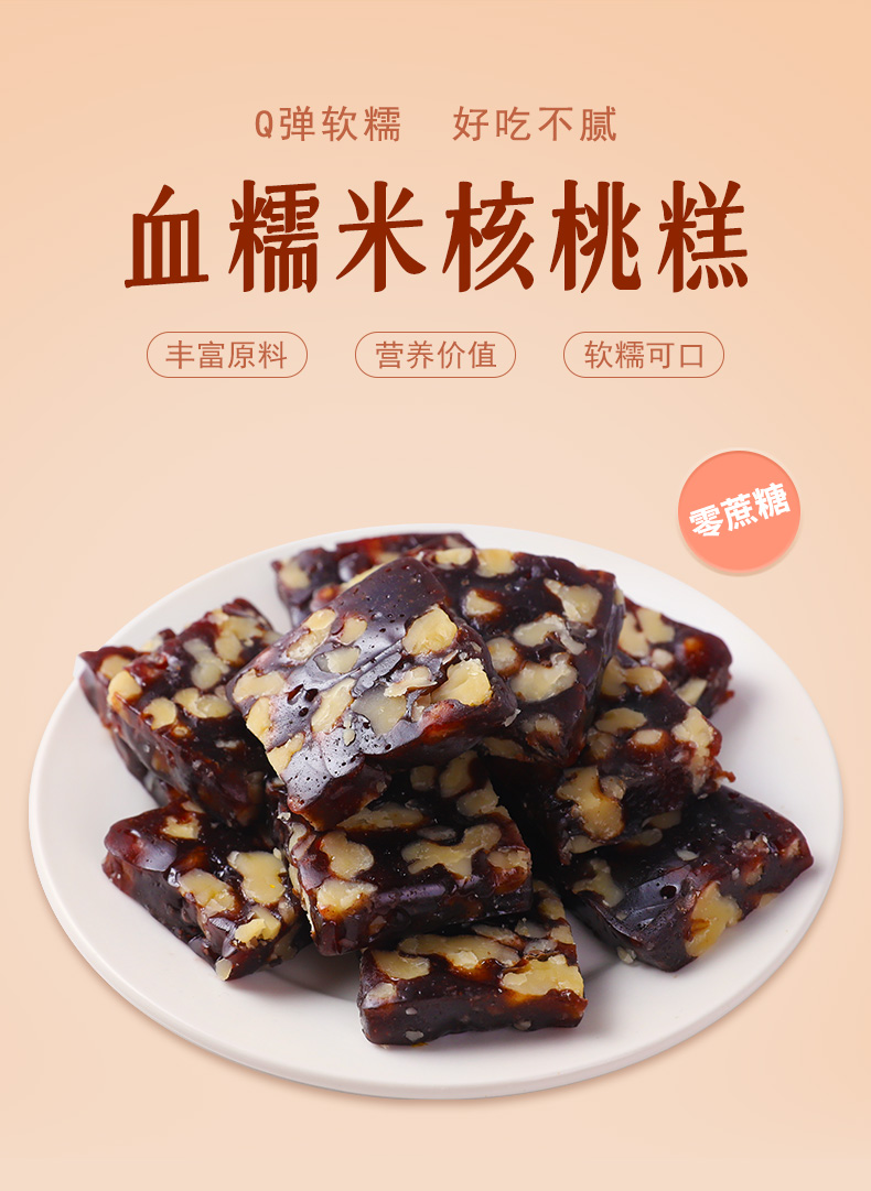 血糯米核桃糕276克(138克*2袋) Q弹软糯,好吃不腻,营养好滋味
