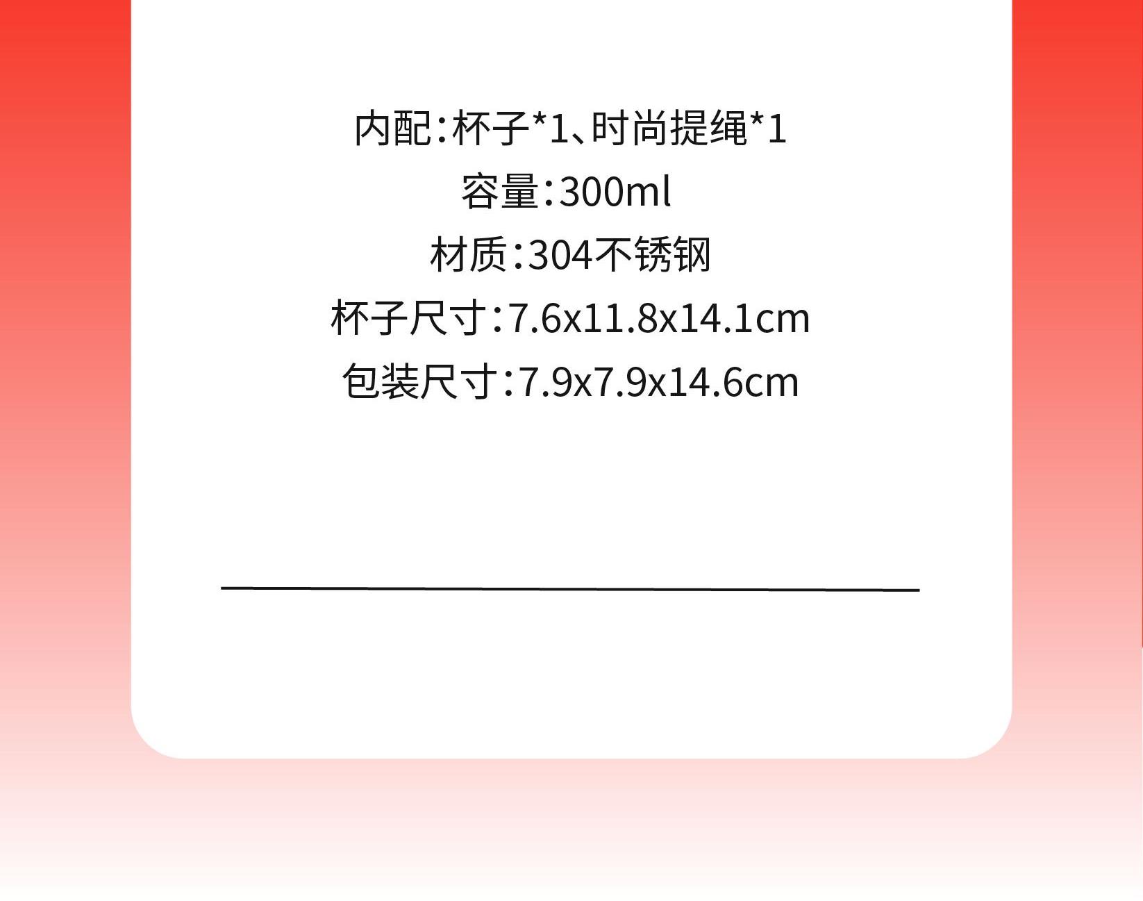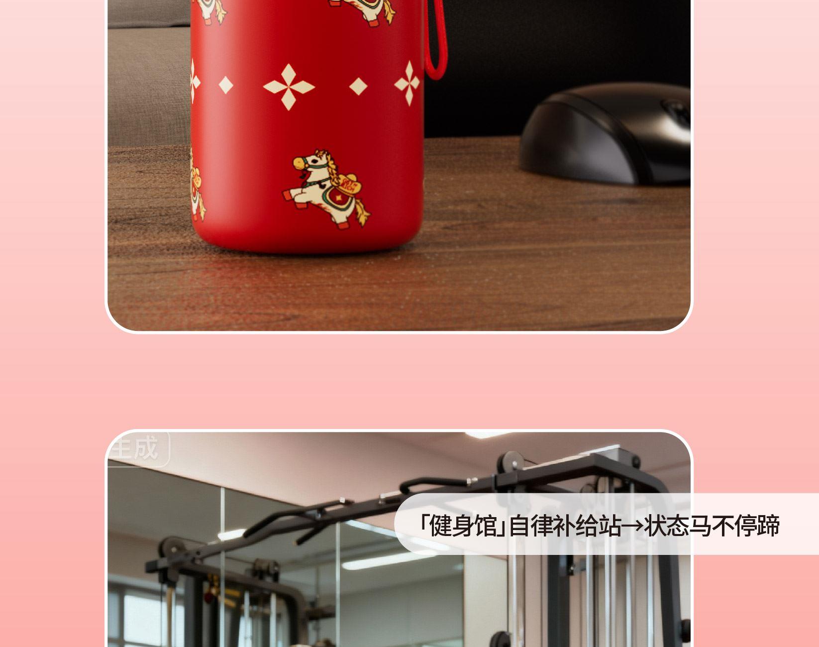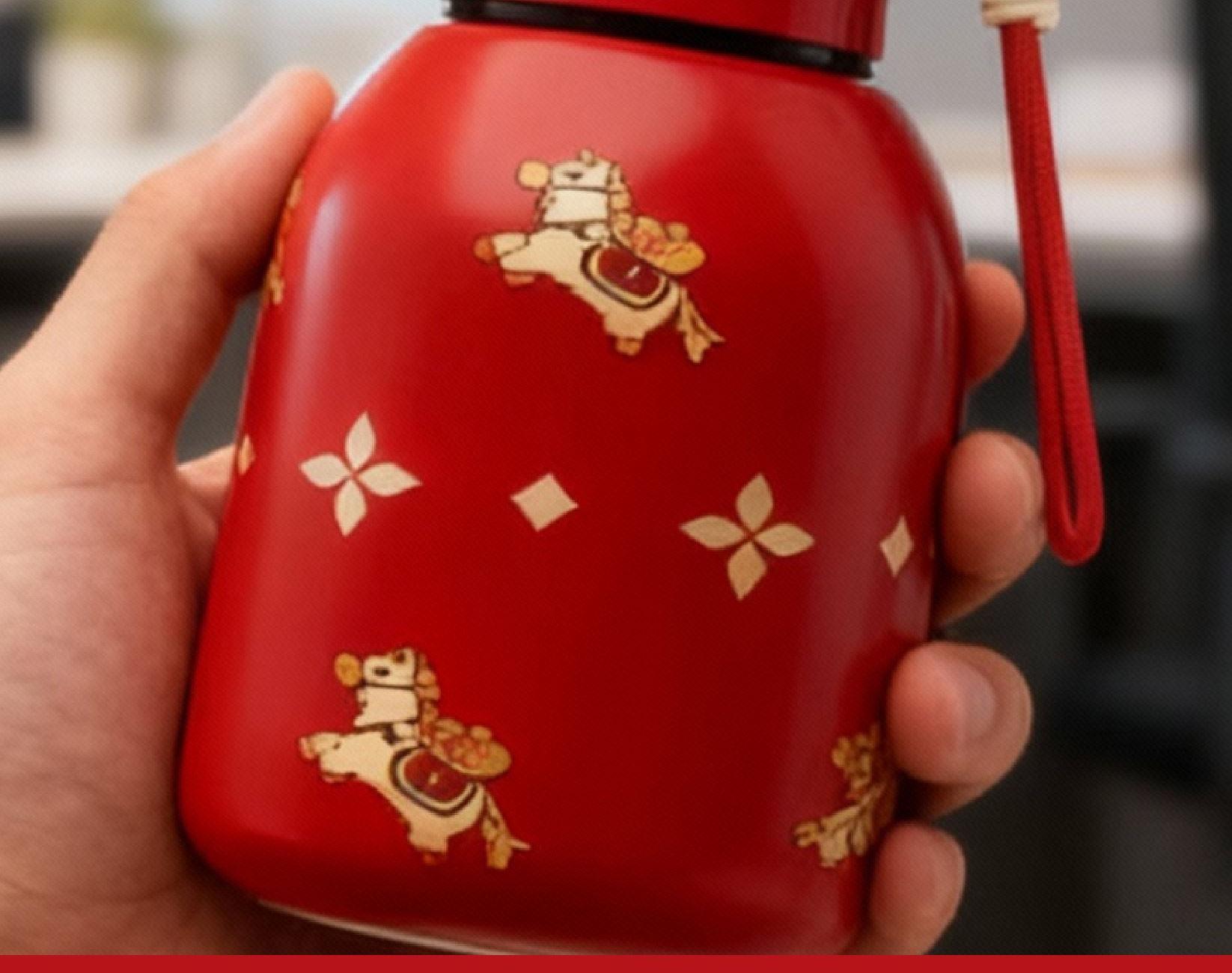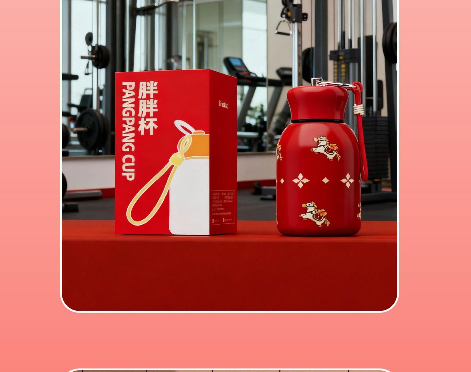 用简练笔触勾勒骏马驮载元宝的灵动姿态。马身姿态昂扬,步履轻盈,寓意新年疾驰而至的福运与财气。马蹄轻启,财随喜至;不驮重负,只载光明。 内配:杯子*1、时尚提绳*1 容量:300ml 材质:304不锈钢 杯子尺寸:7.6x11.8x14.1cm 包装尺寸:7.9x7.9x14.6cm