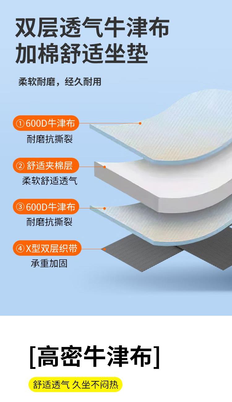 材质:600D牛津布,钢管 尺寸:宽60cm高69cm 折叠设计 轻便出行 精选材质 结实耐用 平稳牢固 便携收纳