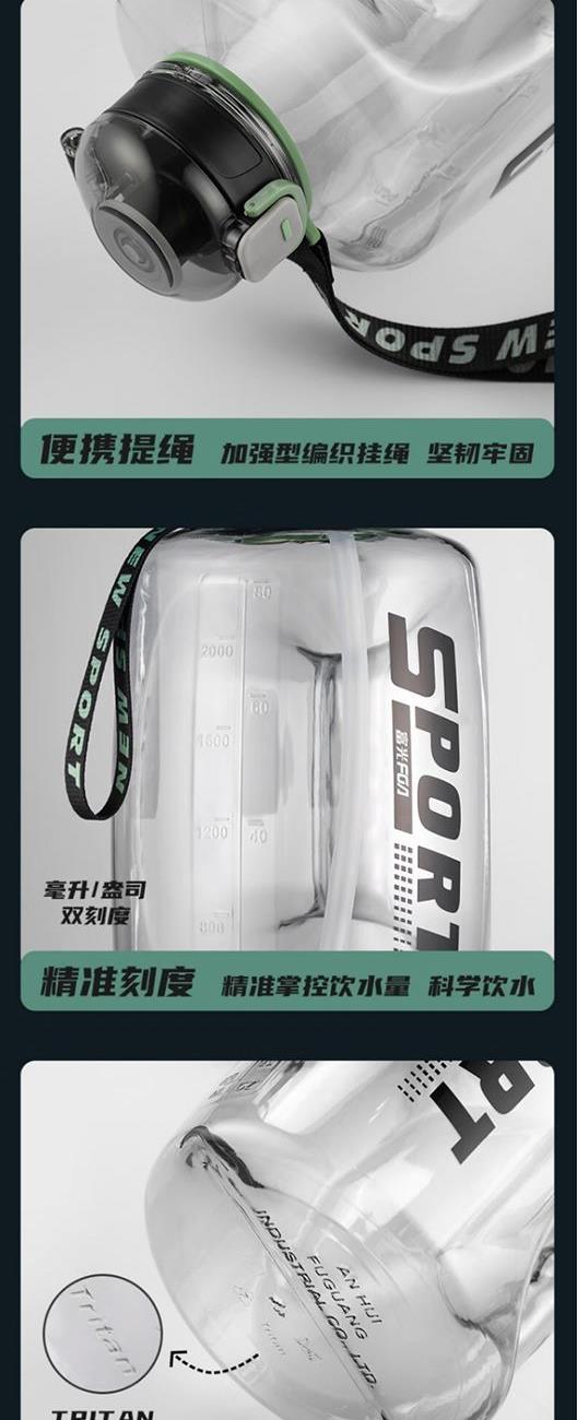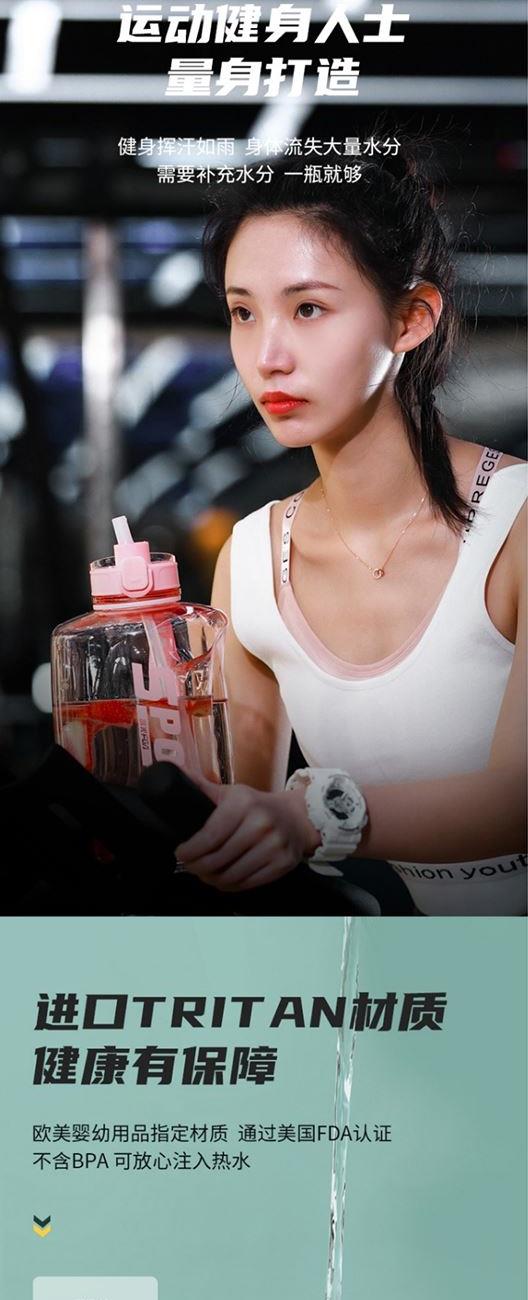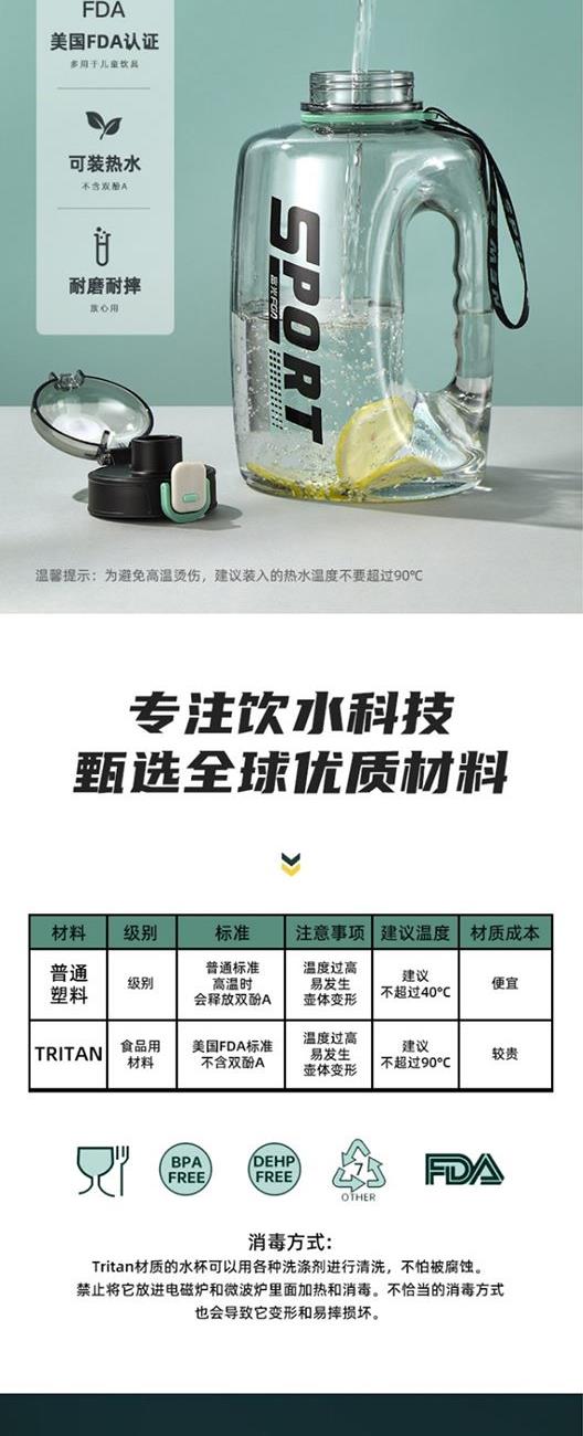 容量:1600ml 颜色:粉色 绿色 灰色 材质:美国FDA公认安排的塑料材质TRITAN, 不含双酚A,婴幼儿使用更放心 包装:方盒包装