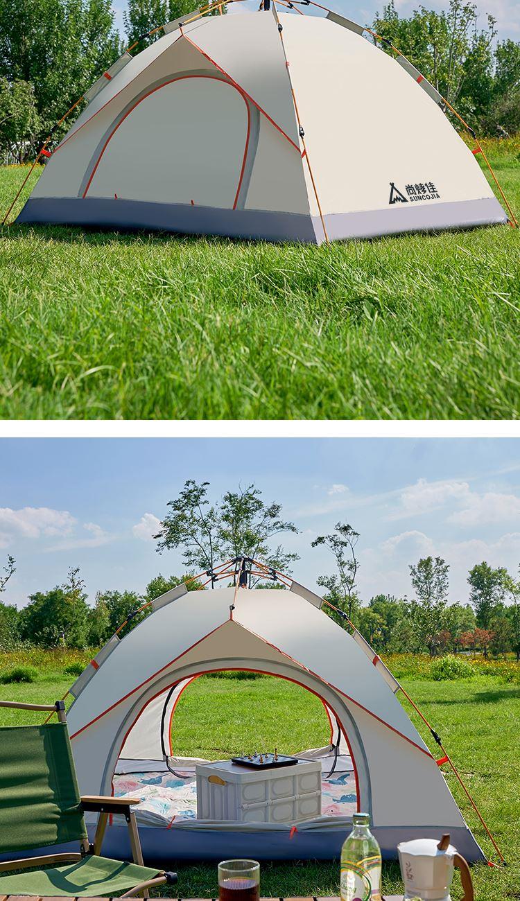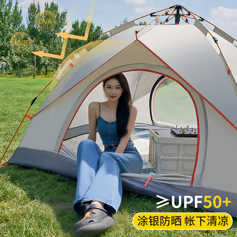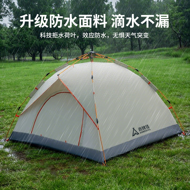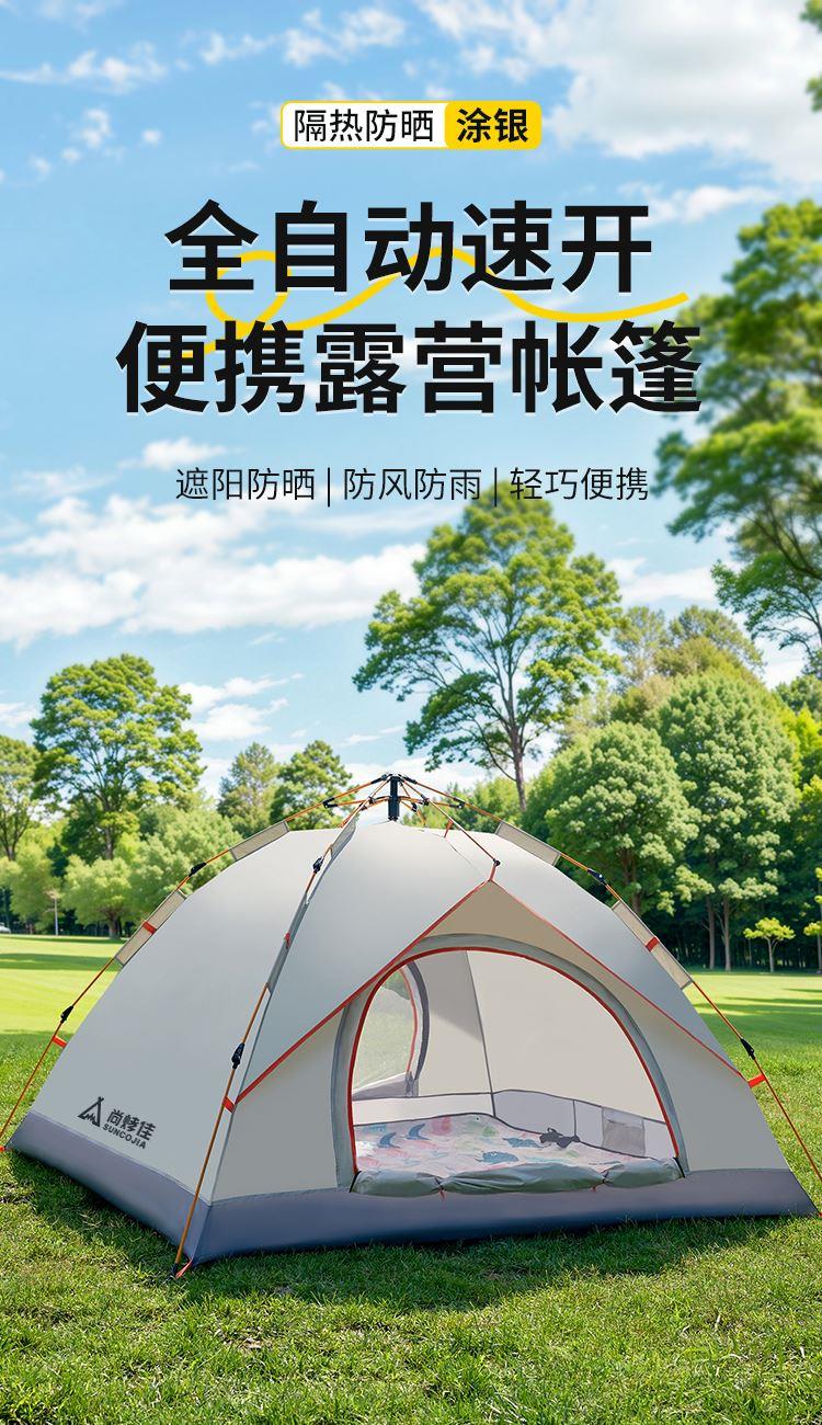 产品材质 210D牛津布 产品重量 1.9KG 产品尺寸 展开尺寸:200x150x125cm收纳尺寸:66x15x15cm 产品配件 收纳袋、防潮垫、地钉*4、风绳*4