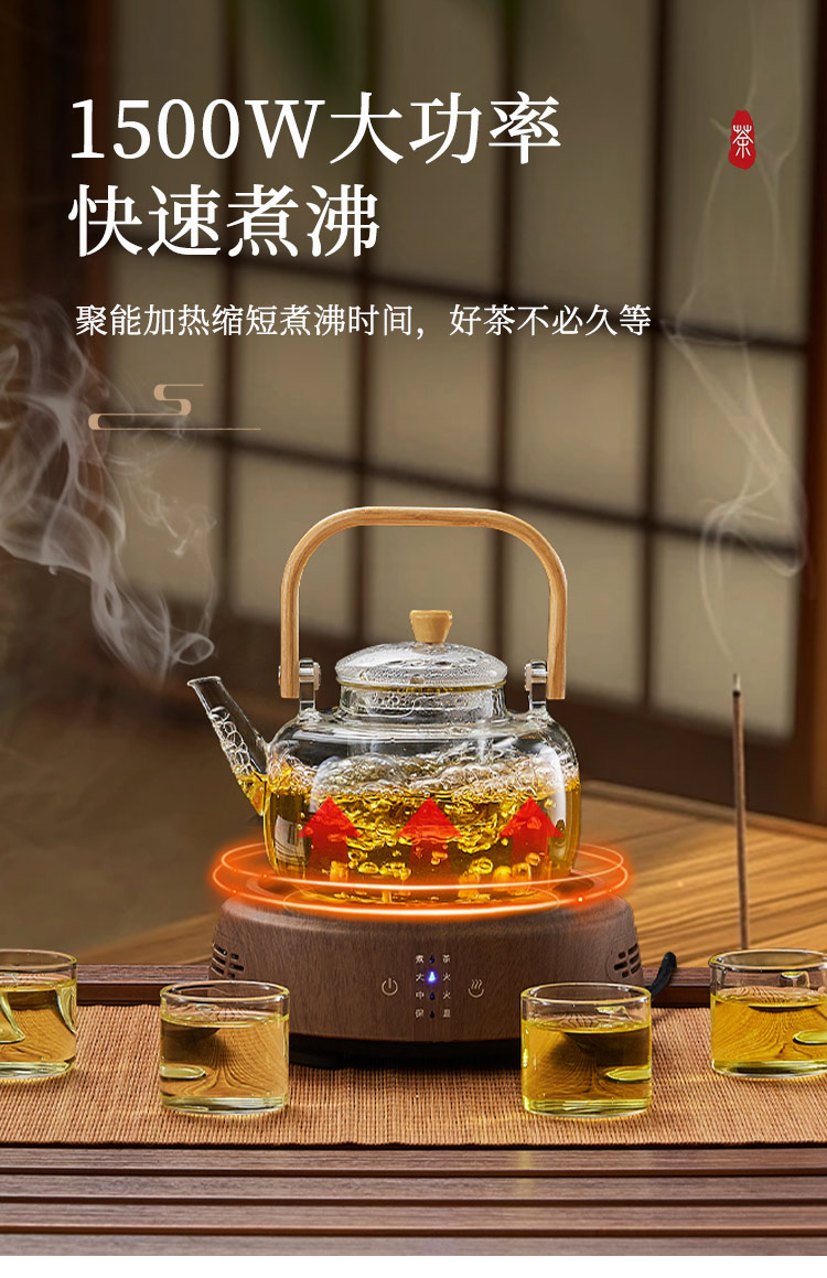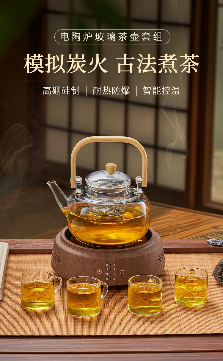材质 微晶板、PBT、高硼硅玻璃 一壶4杯,电围炉