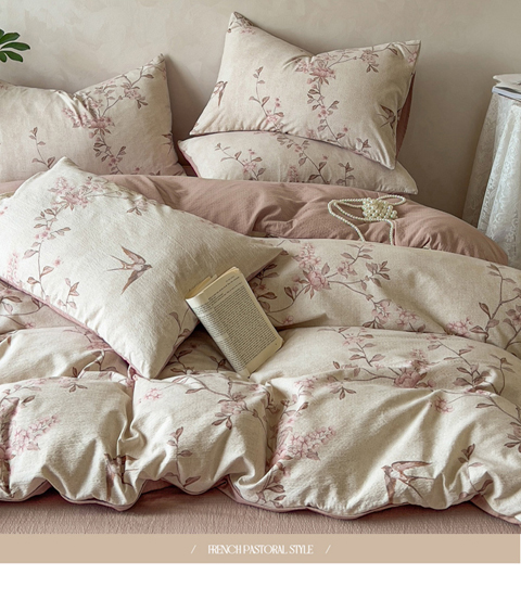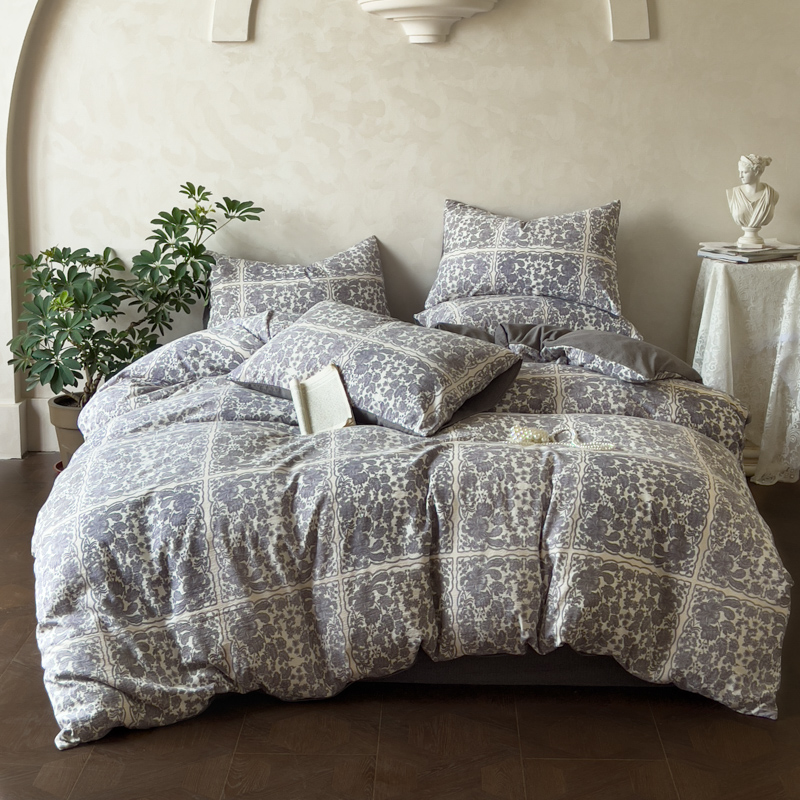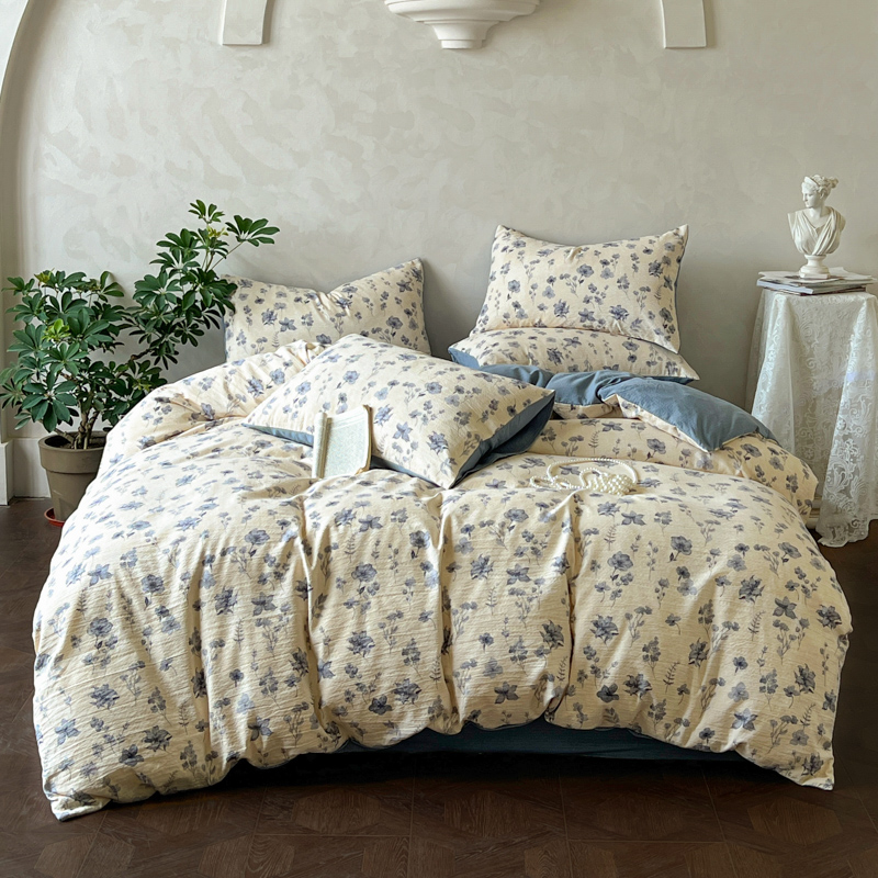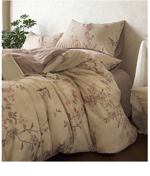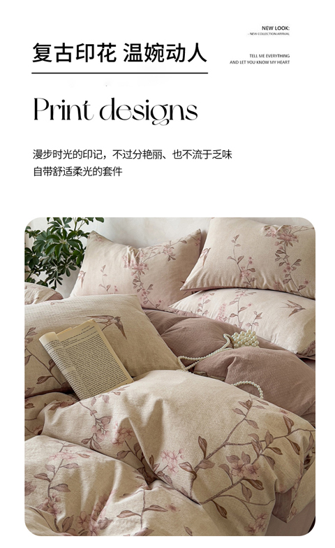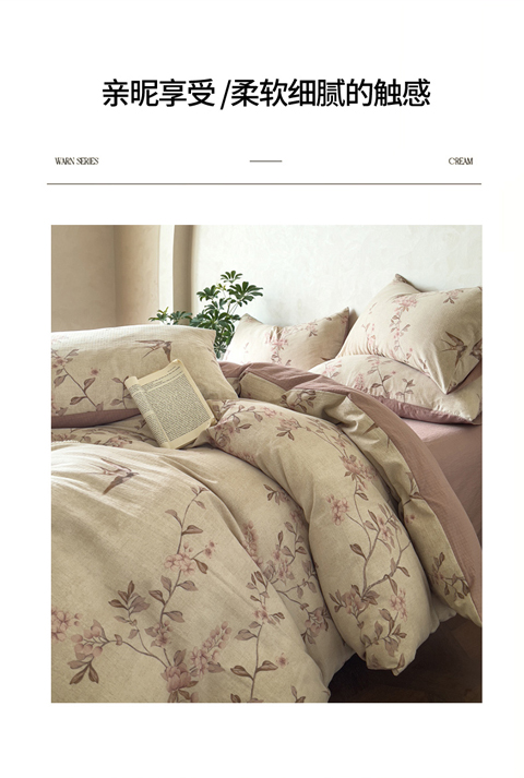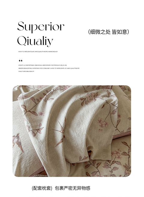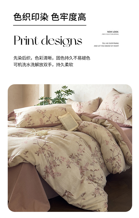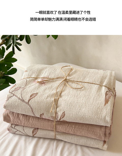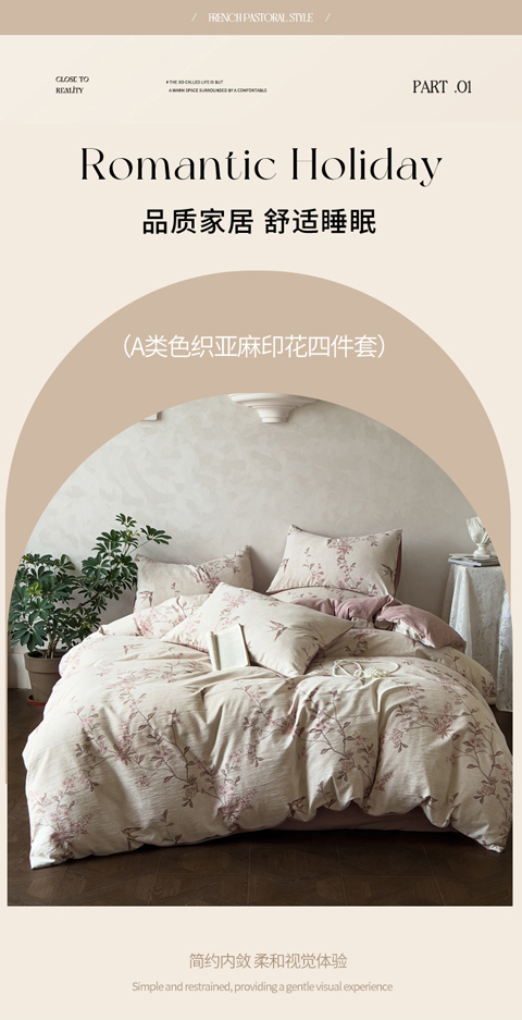 花花公子-家纺-色织亚原麻简麻皱皱纱提花四件套