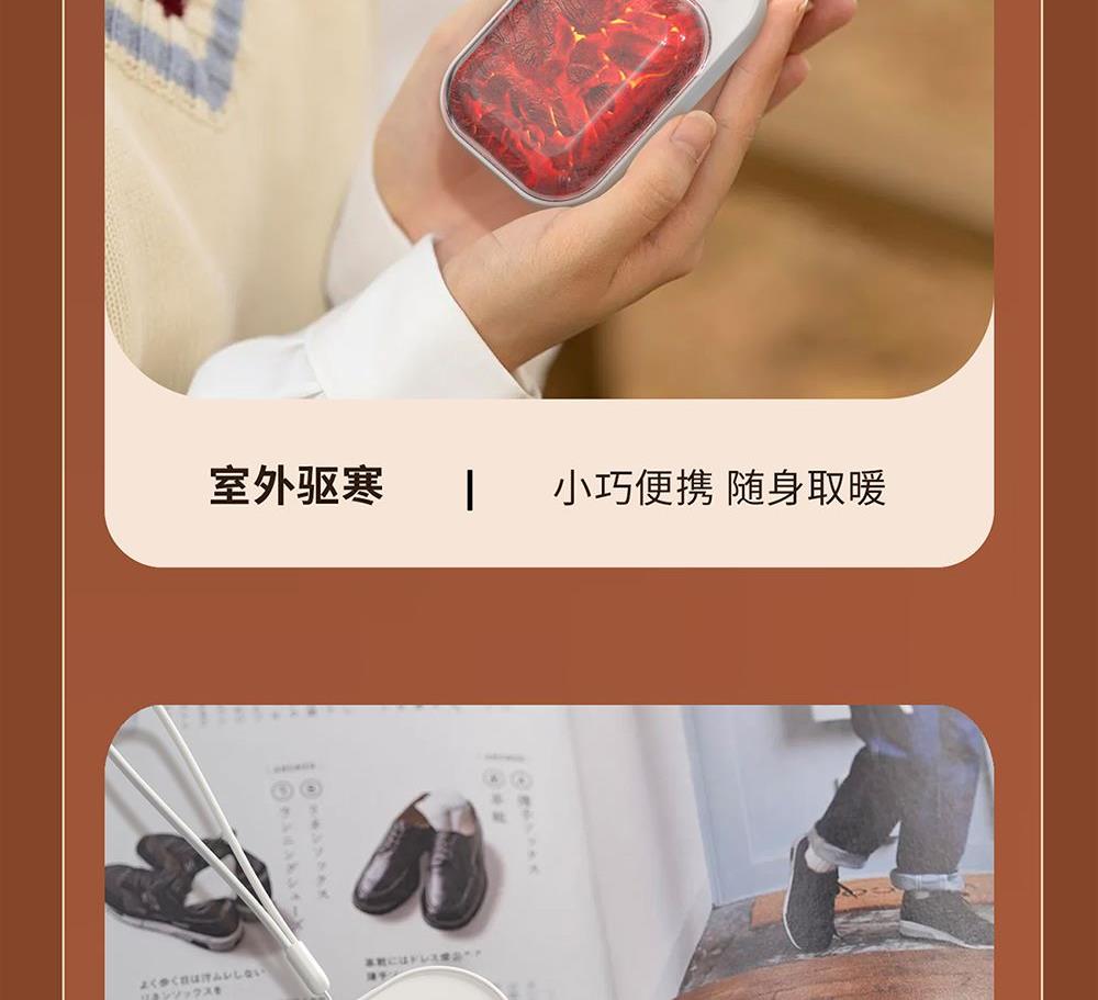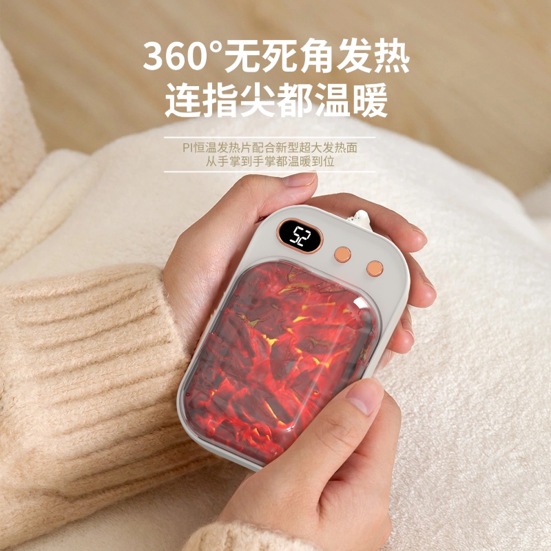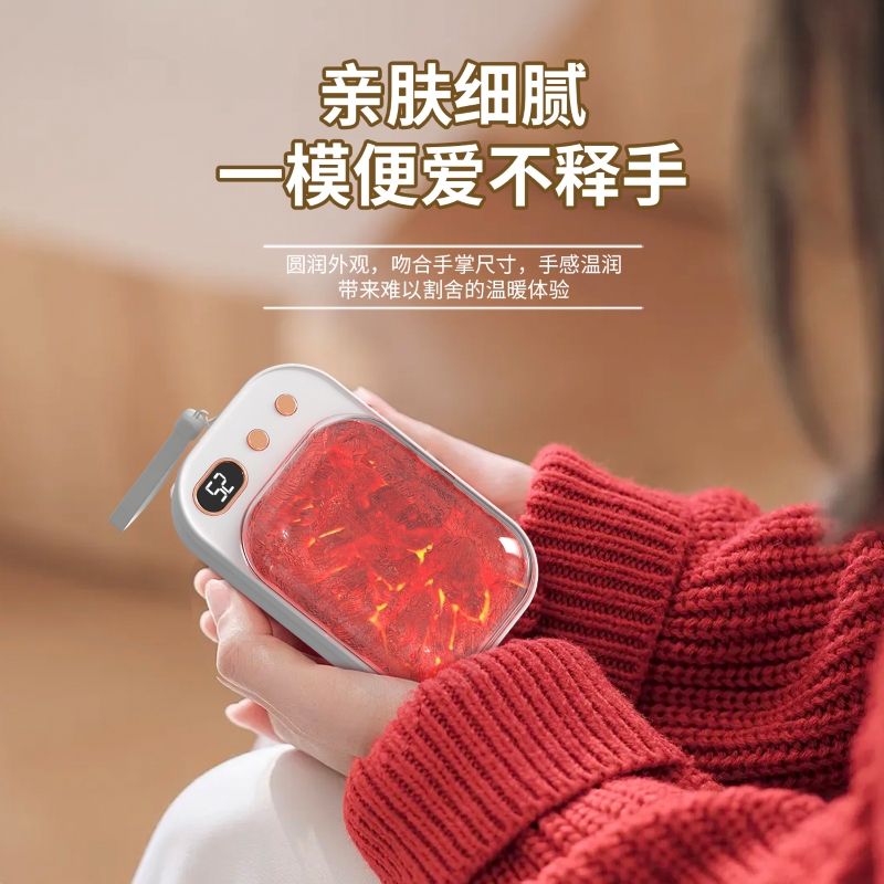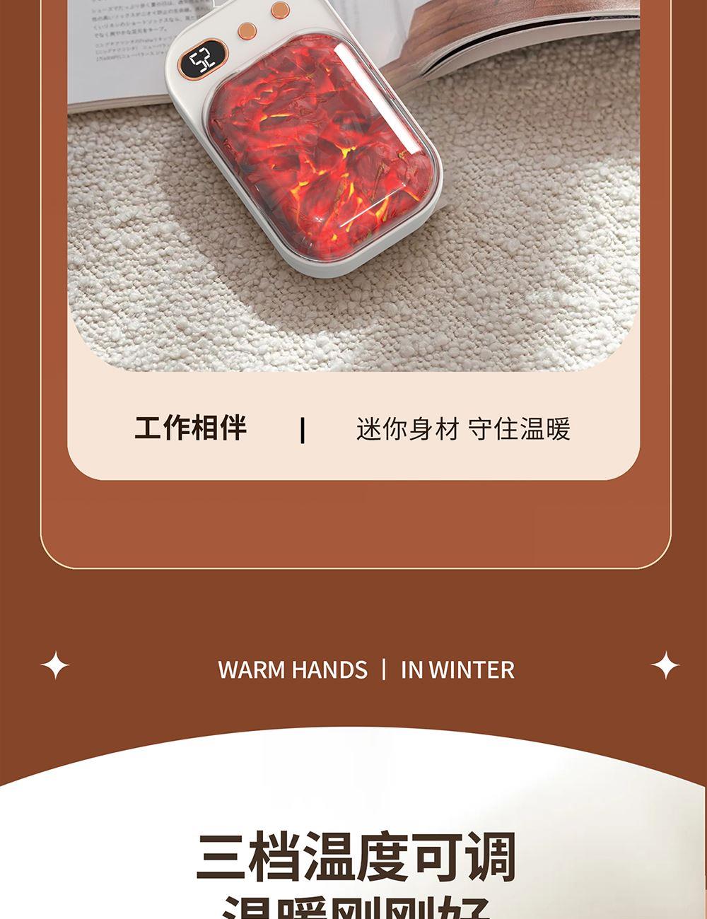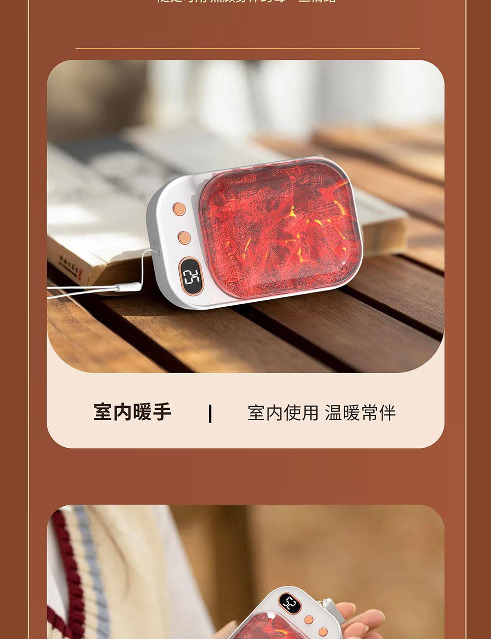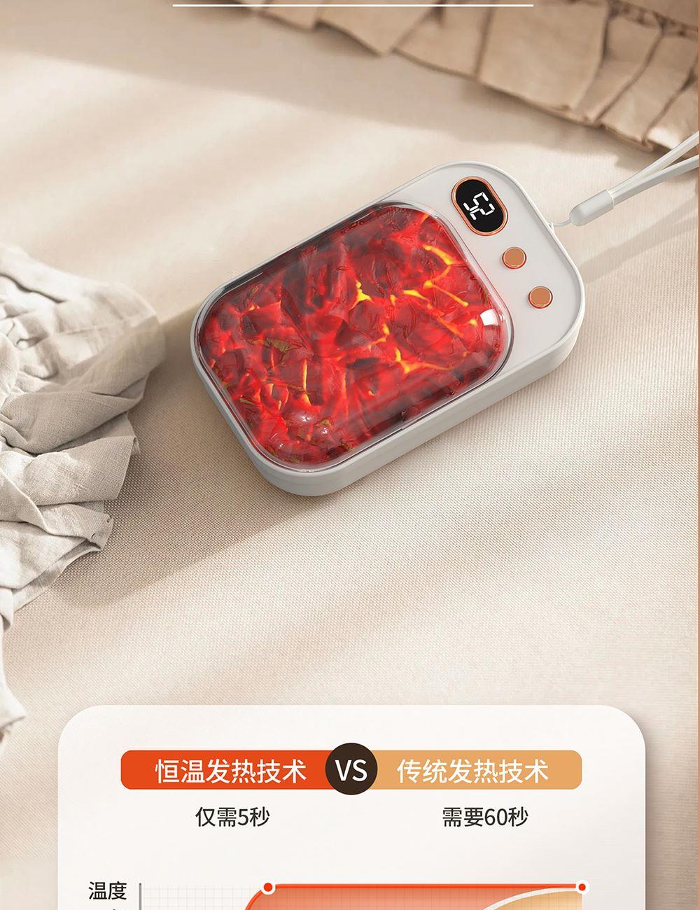 产品材质:ABS+PC+金属+电子元件 产品尺寸:11.2*7*4.3cm 产品颜色:白色 净 重:200g 输入电流:5V/2A 电池容量:4000mAh 功 率:5.5w 使用时间:3小时 产品特点: 小巧便携 随处可放 智能数显 实时电量 圆润外观 创意木炭 三档温度调节 满足多种需求