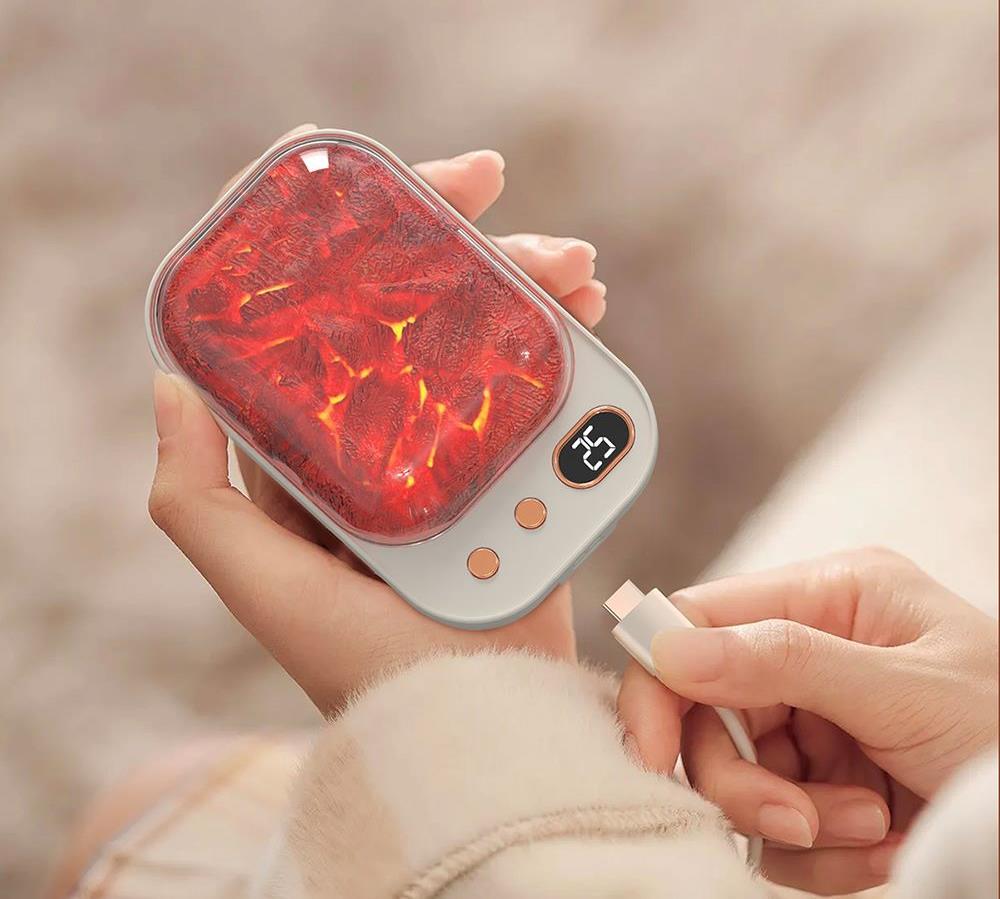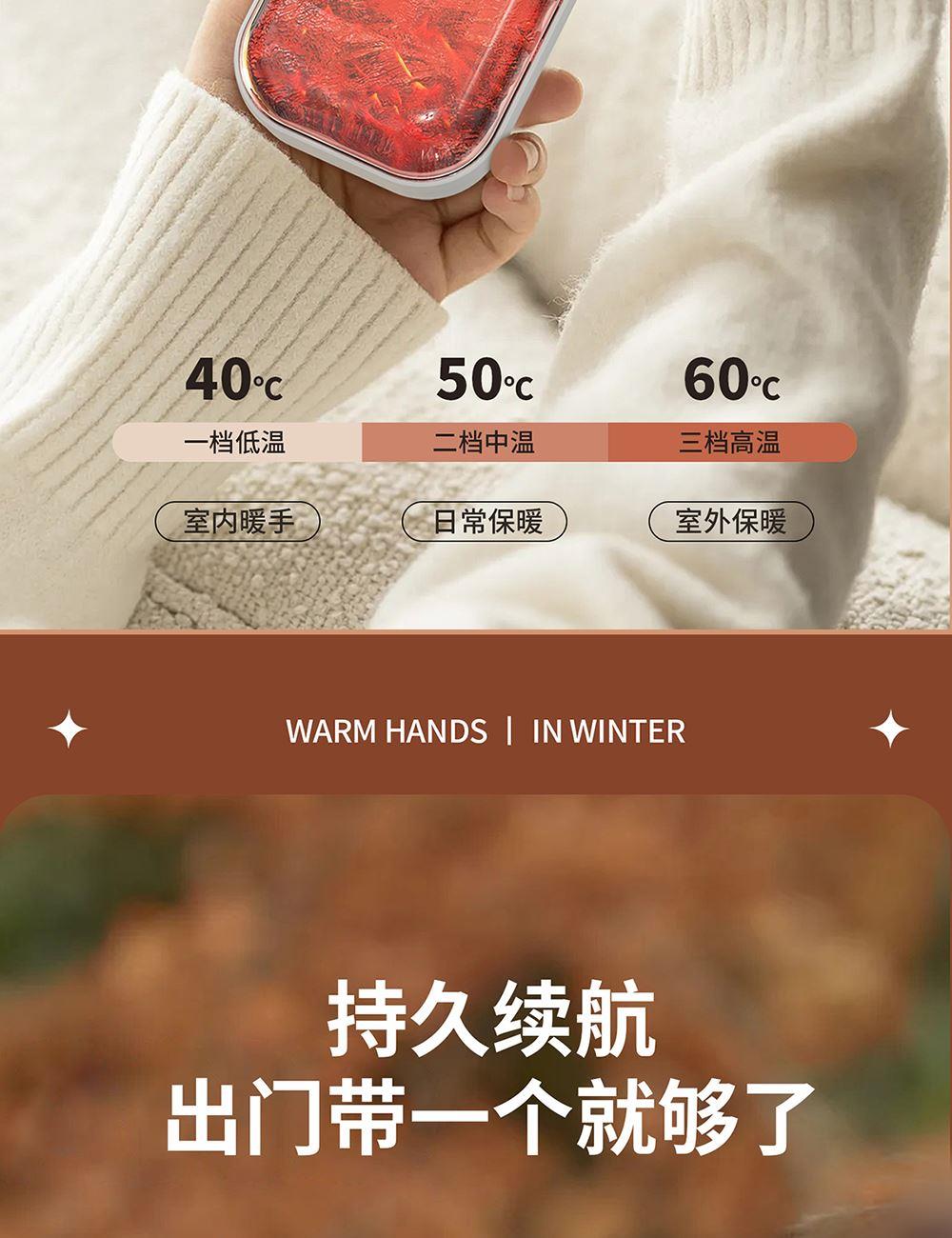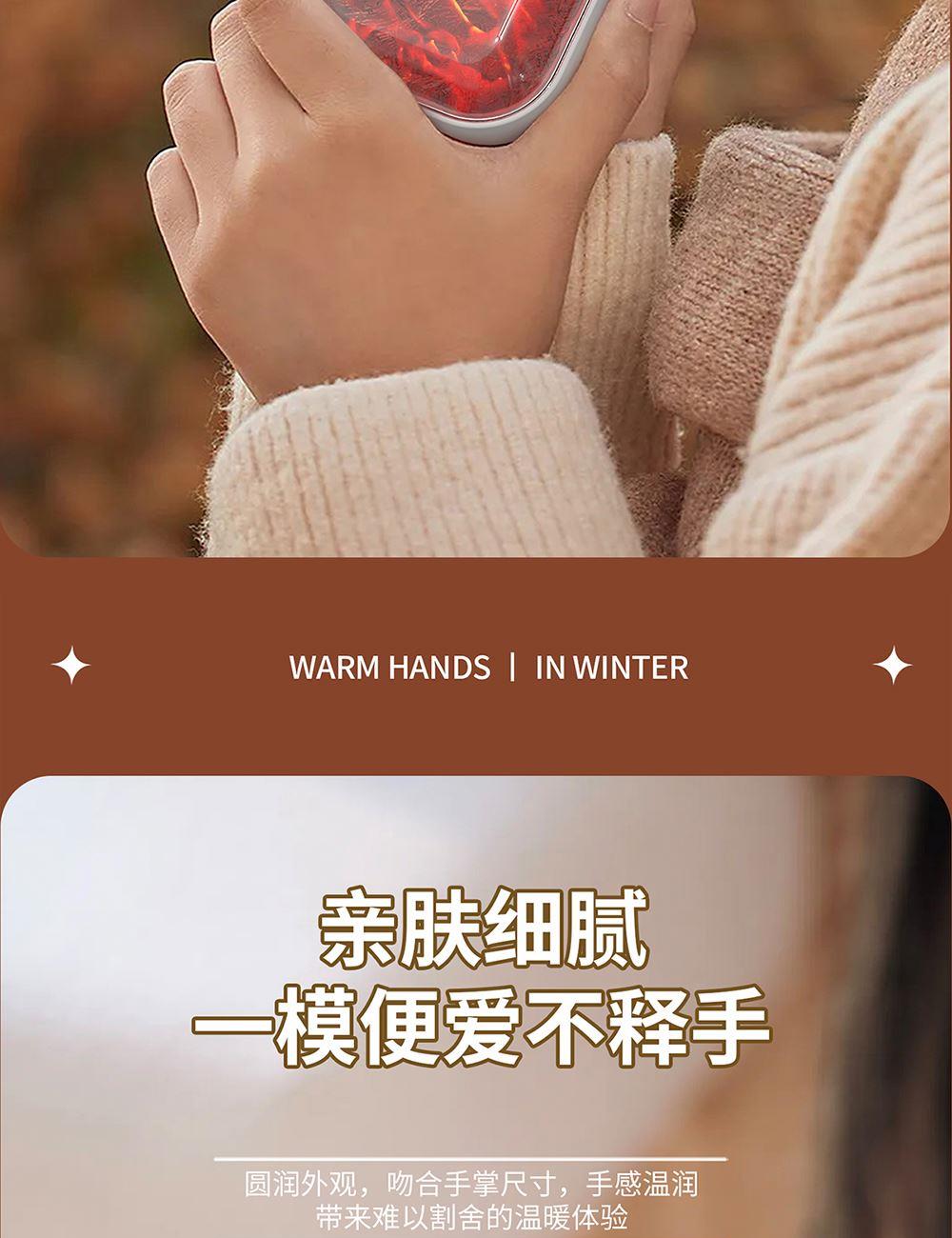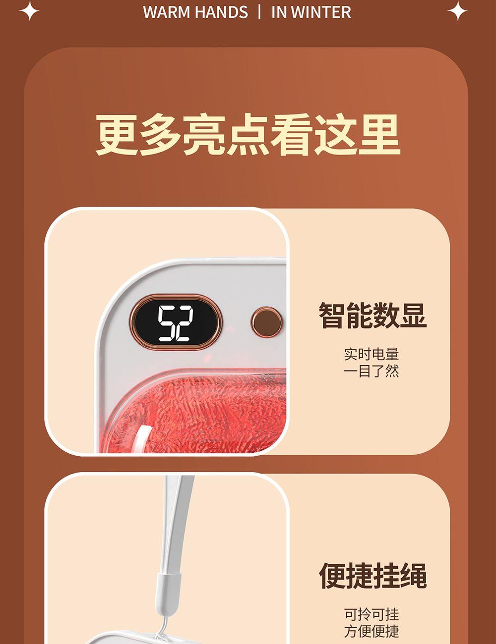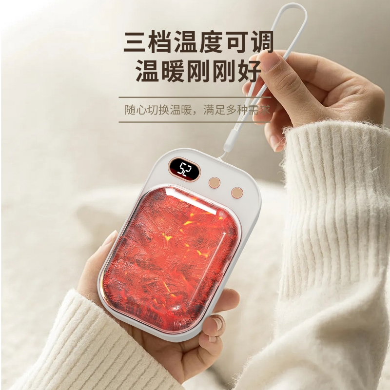 产品材质:ABS+PC+金属+电子元件 产品尺寸:11.2*7*4.3cm 产品颜色:白色 净 重:200g 输入电流:5V/2A 电池容量:4000mAh 功 率:5.5w 使用时间:3小时 产品特点: 小巧便携 随处可放 智能数显 实时电量 圆润外观 创意木炭 三档温度调节 满足多种需求