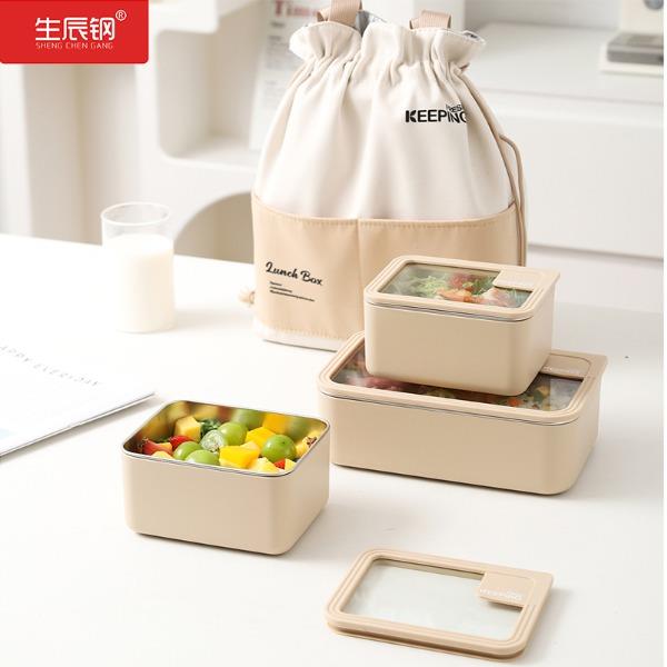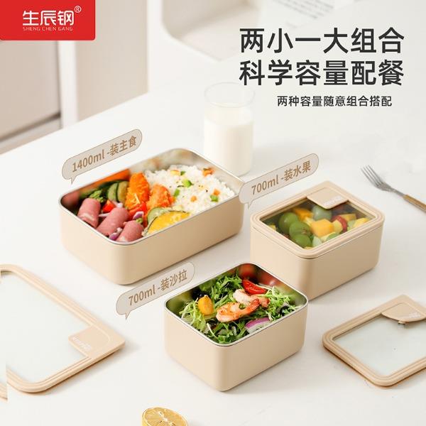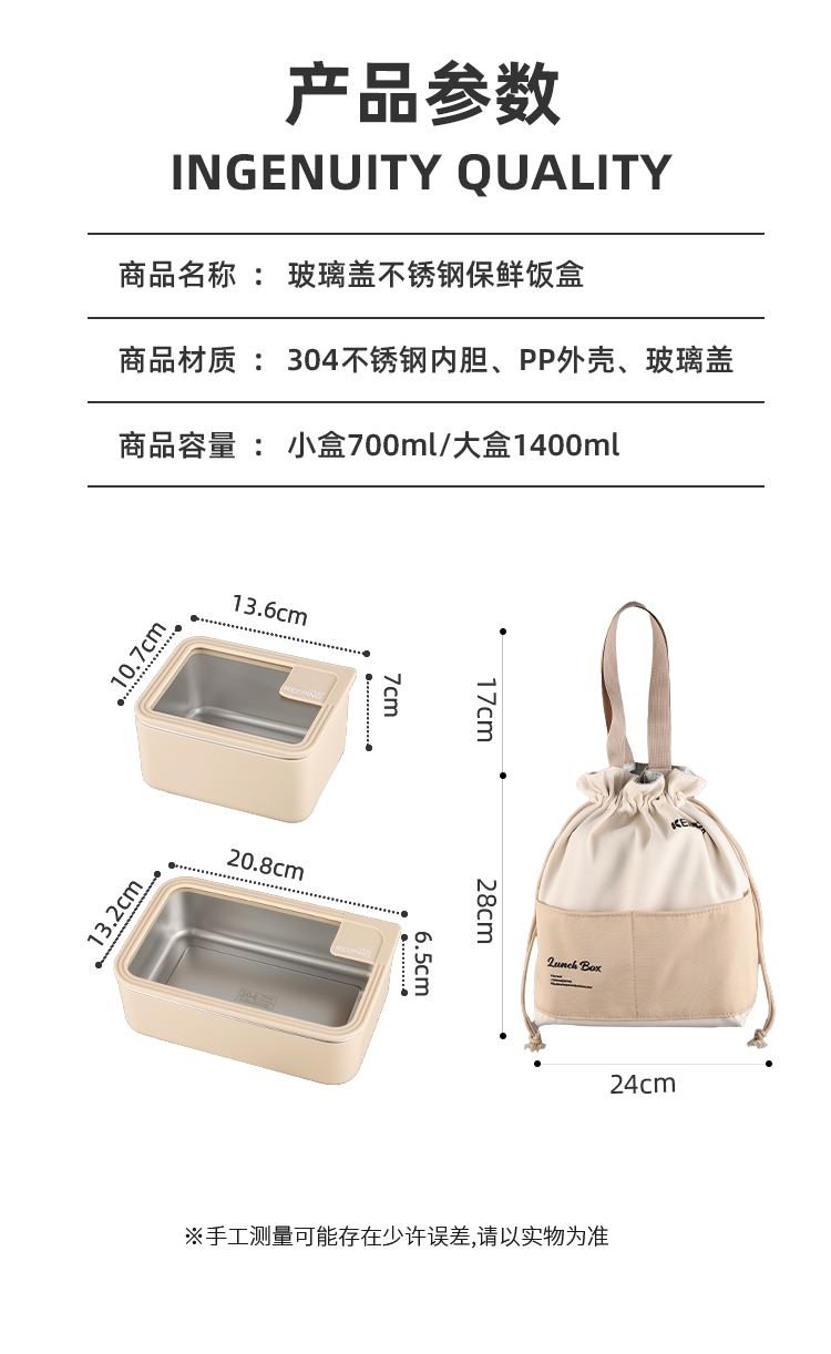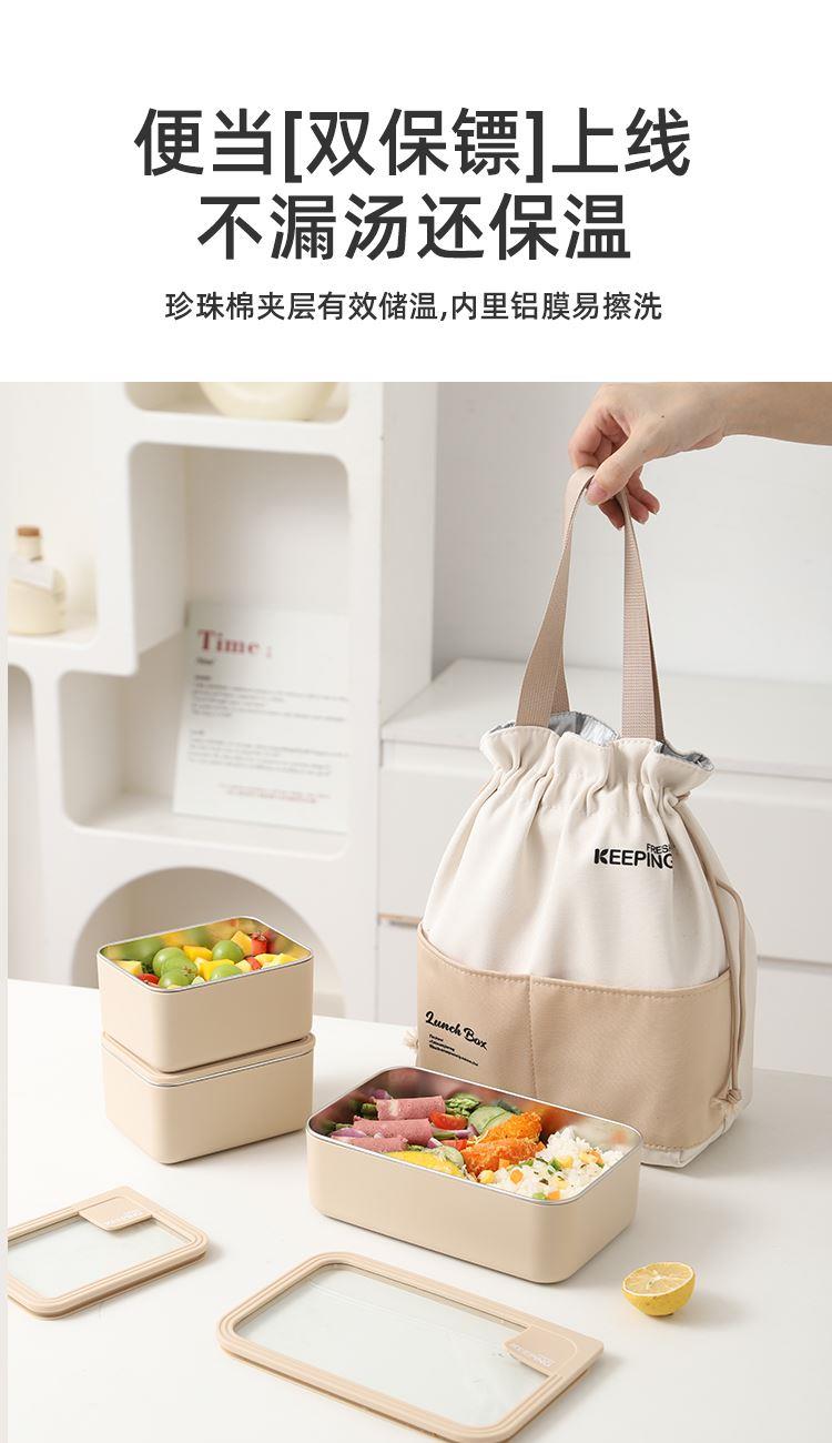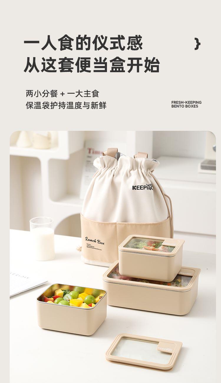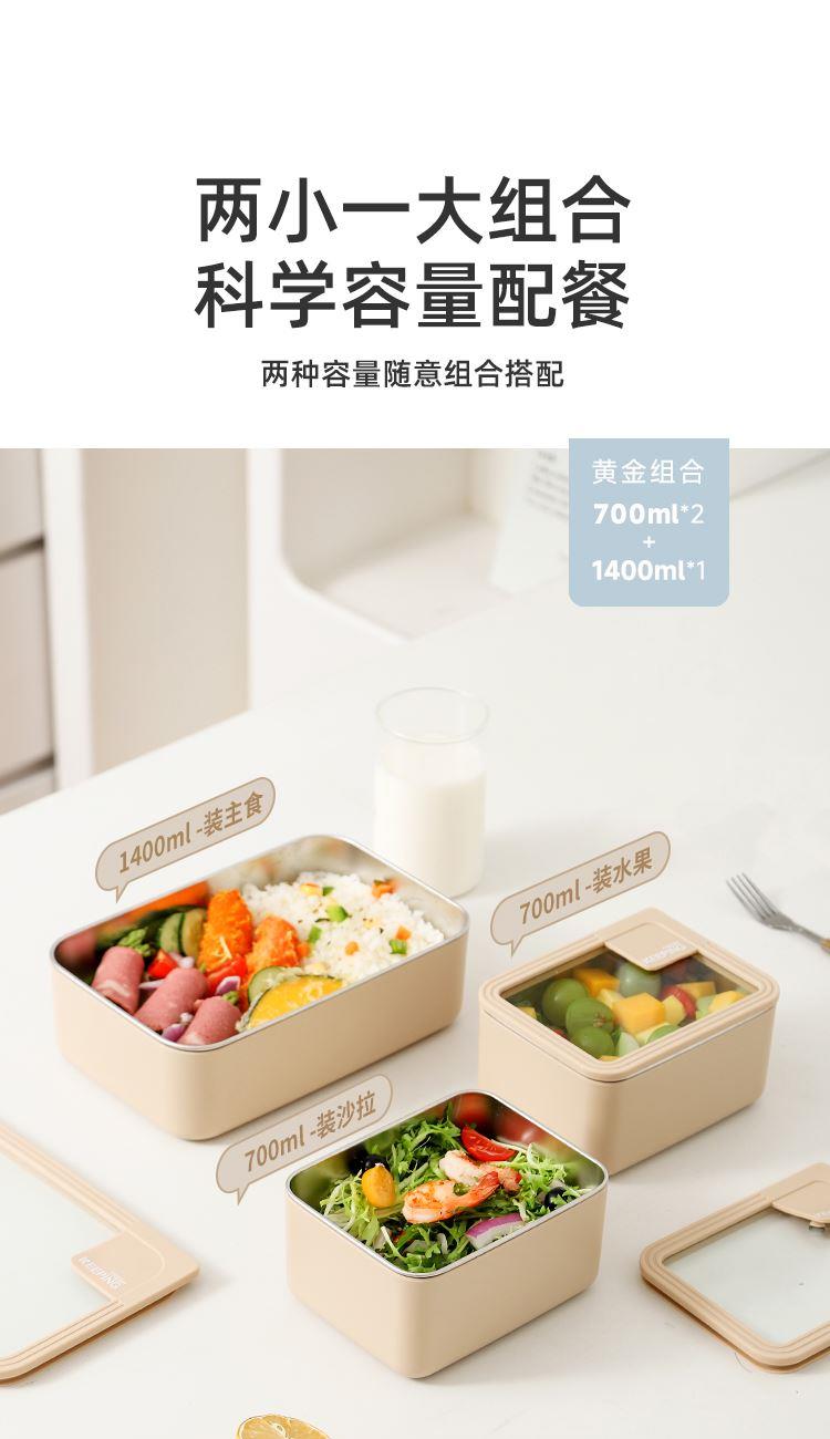 产品容量:三格+提包(小盒700ML、大盒1400ML) 产品材质:304不锈钢内胆、pp外壳、玻璃盖 装 箱 数:16套 京 东 价:368元 严选SUS304食品级不锈钢,每一口都安心; 独立分格设计,告别饭菜串味; 高透玻璃盖,耐热防爆可视,更健康; 硅胶密封圈双重保护,有效防止汤水撒漏,搭配保温袋,户外露营/学生/上班族外出带餐更方便